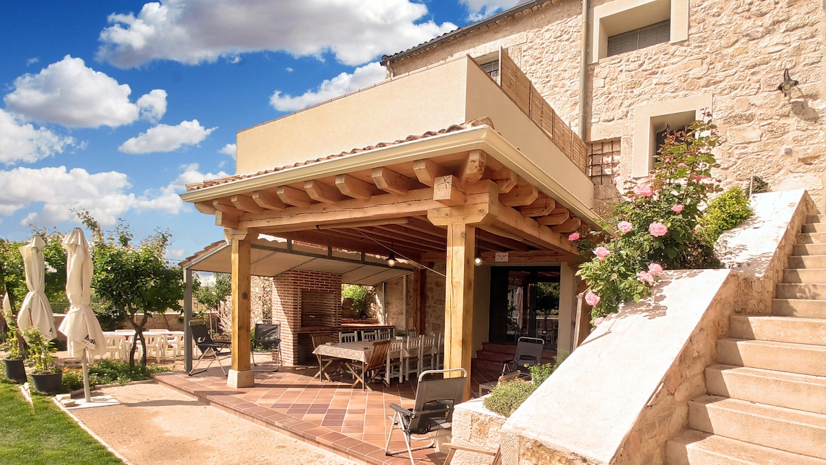 Casita -Madera Vieja-Nature&Relax- located in AMAVIDA (Ávila) has 2 large outdoor areas, a 40m2 patio that gives entrance to the house and a 100m2 back garden with swimming pool and barbecue area. All for private and exclusive use of guests. Centennial house built in 1900 that retains all the charm of the past. Enjoy hiking trails, the tranquility of the village and the sound of nature. Connect with the calm and tranquility of the place.