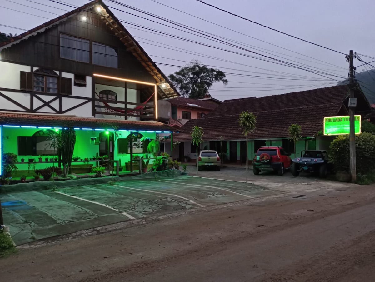 Pousada Colibri Serrano, localizada no coração de Lumiar - Nova Friburgo. Está cercada por um verde exuberante e uma vista incrível para a Mata Atlântica. Estamos localizados a 800m da praça de Lumiar. Nossos chalés oferecem cama de casal, banheiro privativo, frigobar, TV e ventilador, lareira. Café da manhã incluso na diária.