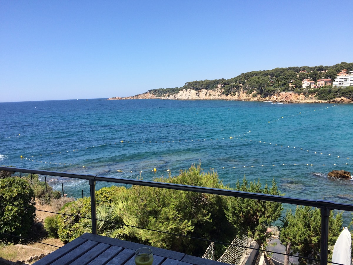 Situation exceptionnelle les pieds dans l 'eau pour cette ancienne maison de pêcheur rénovée pouvant accueillir jusqu'à 4 personnes à Carqueiranne. Lieu atypique située au sein d'une crique intimiste baignée par le clapotis des vagues. Exposition plein sud avec vue remarquable sur la presqu'ile de Giens, la baie de l'Almanarre et l' Ile de Porquerolles. Vous serez en harmonie entre la mer et la terre. Idéal pour se ressourcer au calme et profiter de la Provence. Votre Jardin c'est la mer !