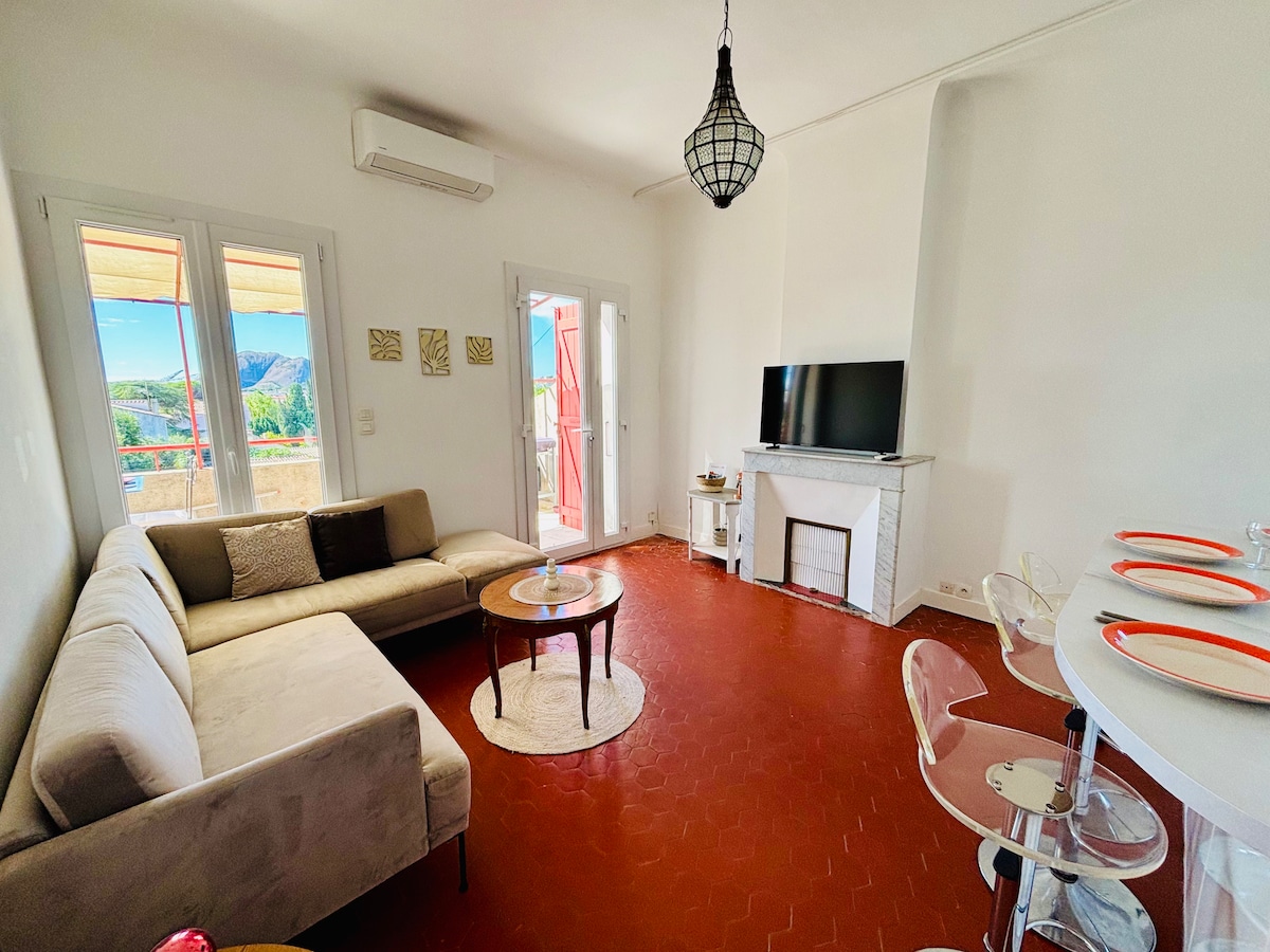 Appartement entièrement climatisé au dernier étage d'une maison de village. Ce logement rénové est muni d'un balcon + grande terrasse avec vue sur château, cap canaille et couronne de Charlemagne. Il est situé à 100m du port, 150m de la plage et à proximité immédiate des commerces. Il est équipé d'une place de parking privatif ce qui est très rare à Cassis. Cassis possède un environnement unique dont le fameux cap canaille ainsi que ses calanques.