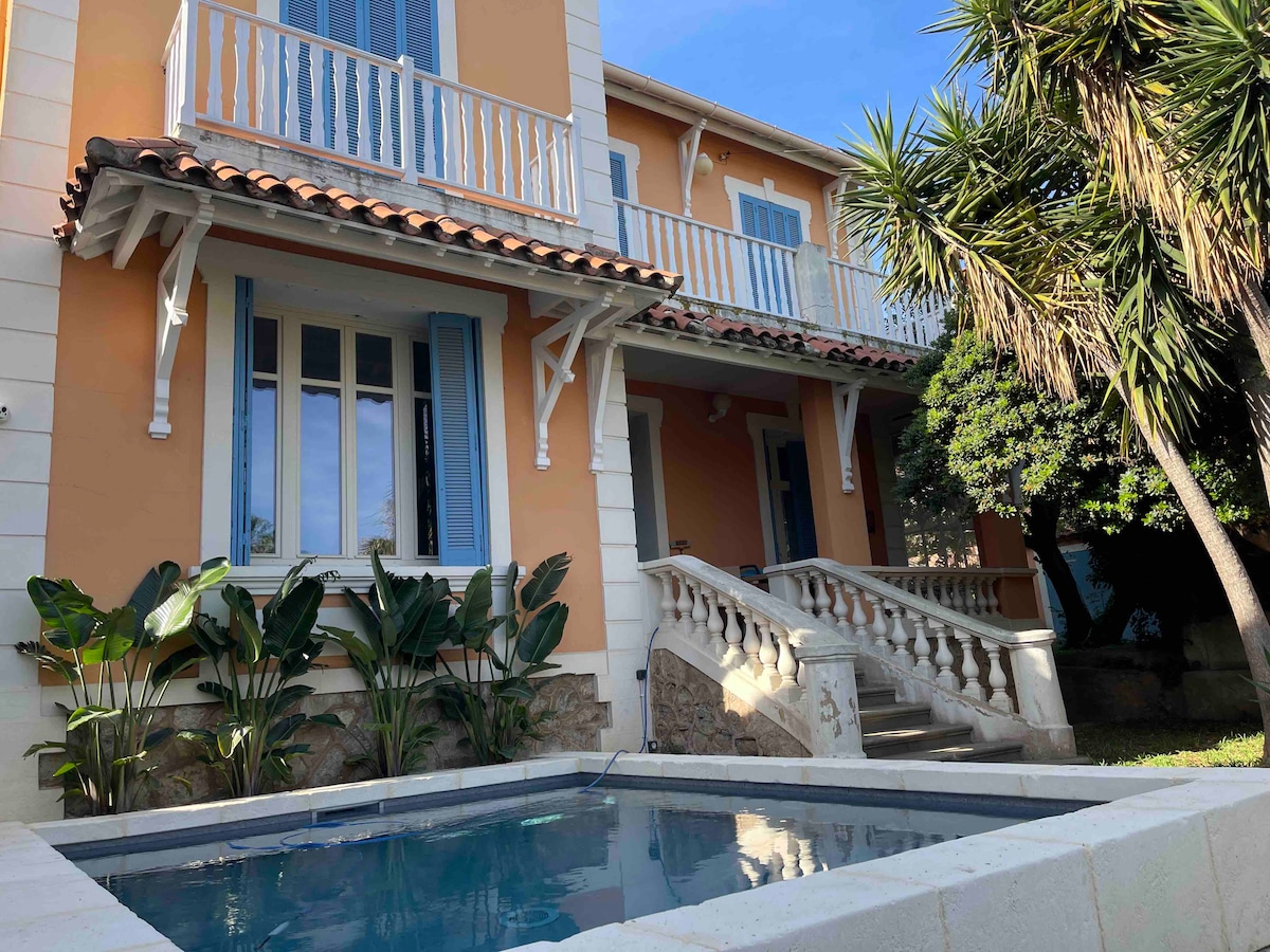 SANARY - Villa Victoria - Maison de maitre de 1912, piscine chauffée (supplément) centre de Sanary entre le port et la plage, tout se fait à pieds. Pouvant accueillir jusqu'à 11 personnes , la villa Victoria possède 4 chambres et 2 salles de bain dans la villa et une chambre avec sa salle de bain dans le jardin. Un vaste salon neuf, une cuisine équipée seront à votre disposition. Un jardin arboré d'arbres centenaires provençal, une piscine, un accès direct à la ville et au port . Parking et Wifi