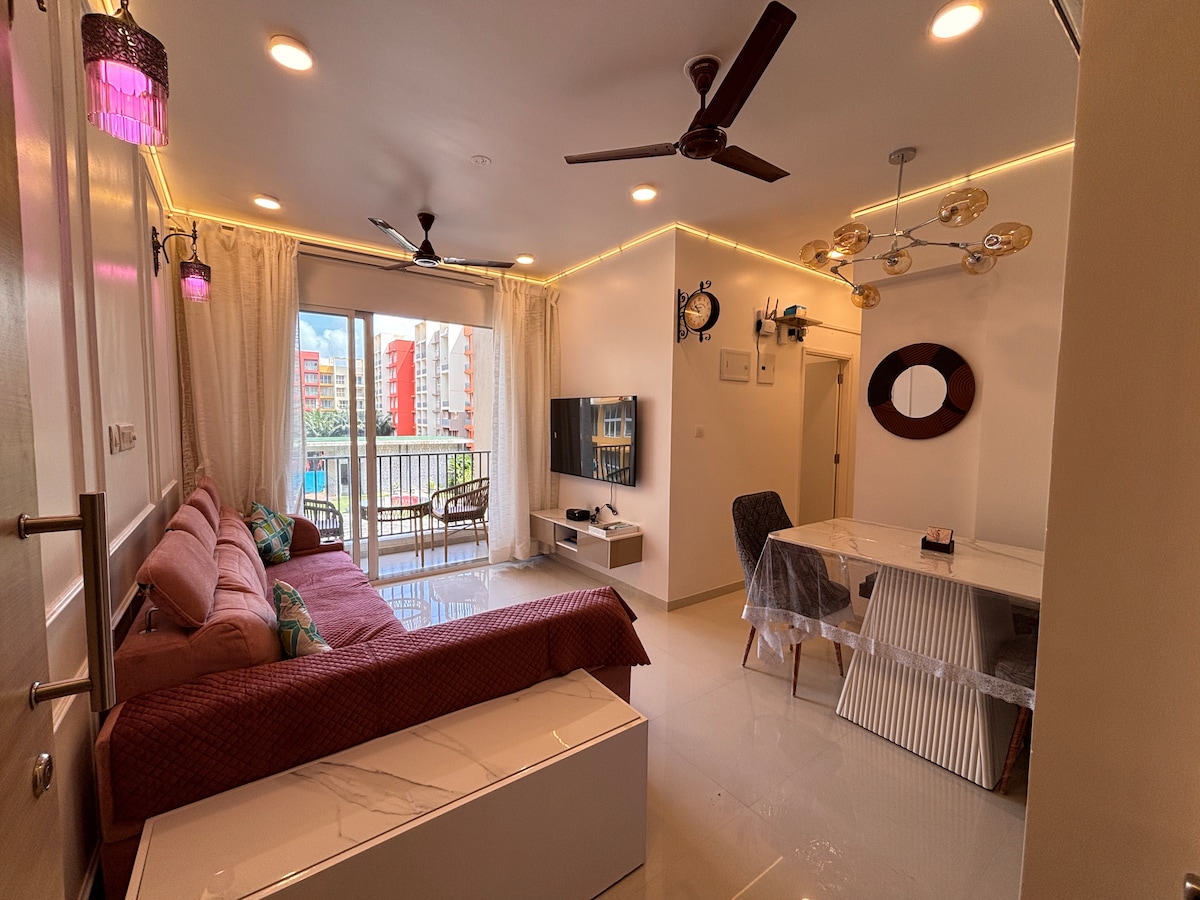 Kick back and relax in this calm, stylish space designed for 2 with all modern amenities to easy your holiday. Located just 8 min from Goa's Dabolim airport, the apartment nests in a residential society with 24 hours security. 3 beaches are in a radius of a 15 min drive. Amenities provided are: 2 split AC each in Bedroom and Living Room, LED TV 42 inch, Kent RO, Fridge, Bosh Fully Washing Machine, Hair Dryer, Tea Kettle, Toaster, Electric Rice Cooker, Induction Stove, Crockery and a geyser.