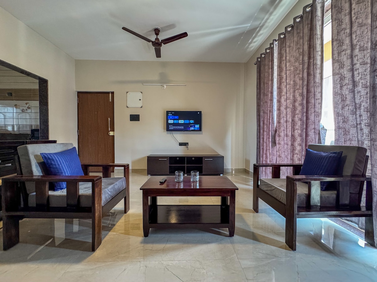 Welcome to Sukham Stays, a luxurious 2BHK stay at Dabolim. Wake up to the breathtaking sea, river and lush green forest views from every room. Elegant interiors, plush beds, modern fully functioning kitchen, and clean bathrooms with all amenities create an intimate escape. Enjoy the pool, gym, terrace and other essential areas. Just minutes from Goa Airport a romantic sanctuary of style and tranquility. Sophisticated space that instantly feels like home. Please check location before booking