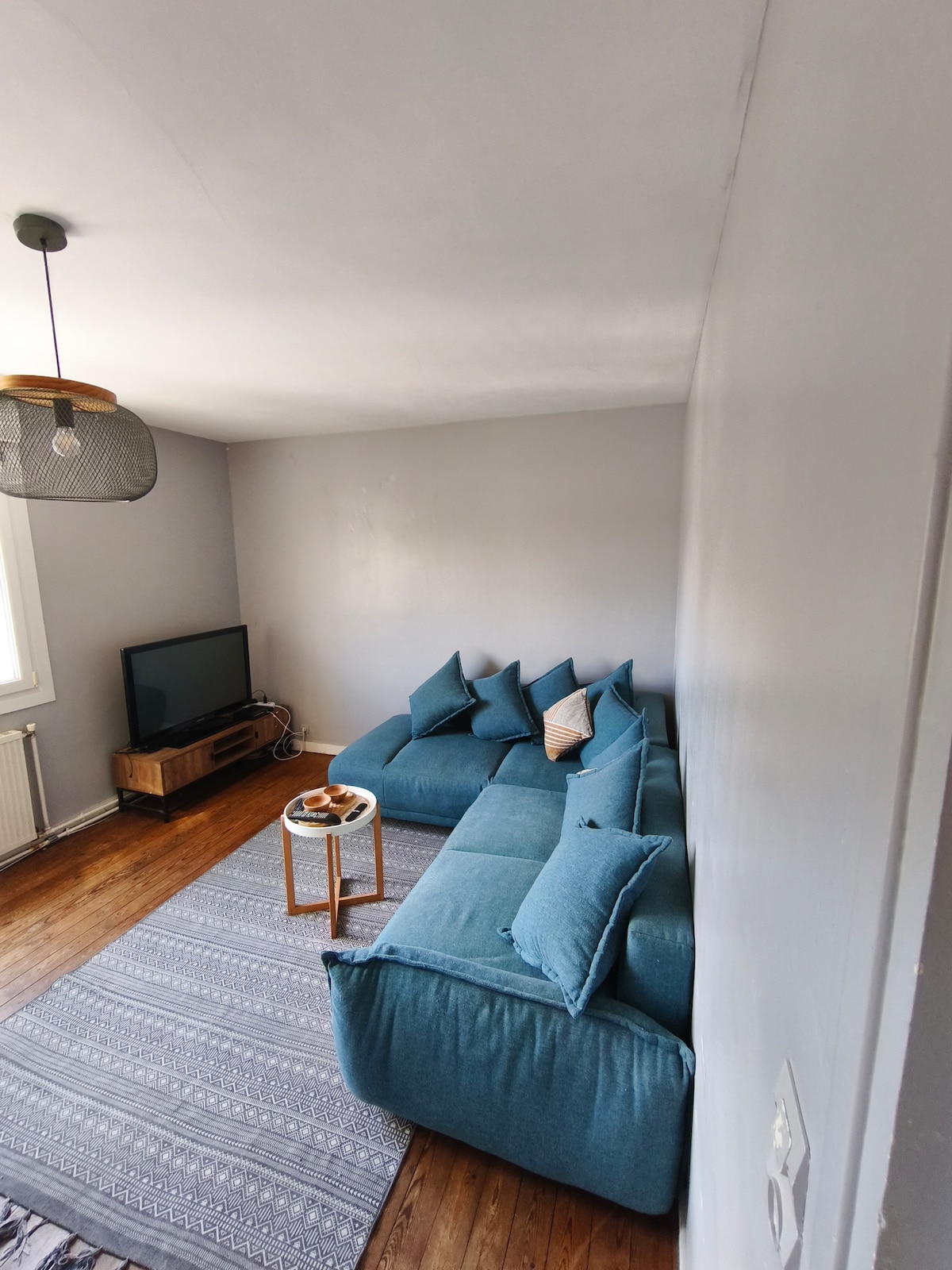 Jolie petite maison cosy en cœur de ville. Proche de tous commerces. Pour le travail, les vacances ou en famille, venez y poser vos valises. Ce logement est composé d'un espace séjour et salle à manger et d'un coin cuisine. A l’étage, vous trouverez une chambre avec lit électrique et une salle de bain avec machine à laver séchante. Il peut accueillir jusqu'à 4 personnes grâce à son canapé convertible. Vous pourrez profiter d'une petite cour commune avec une petite boutique.