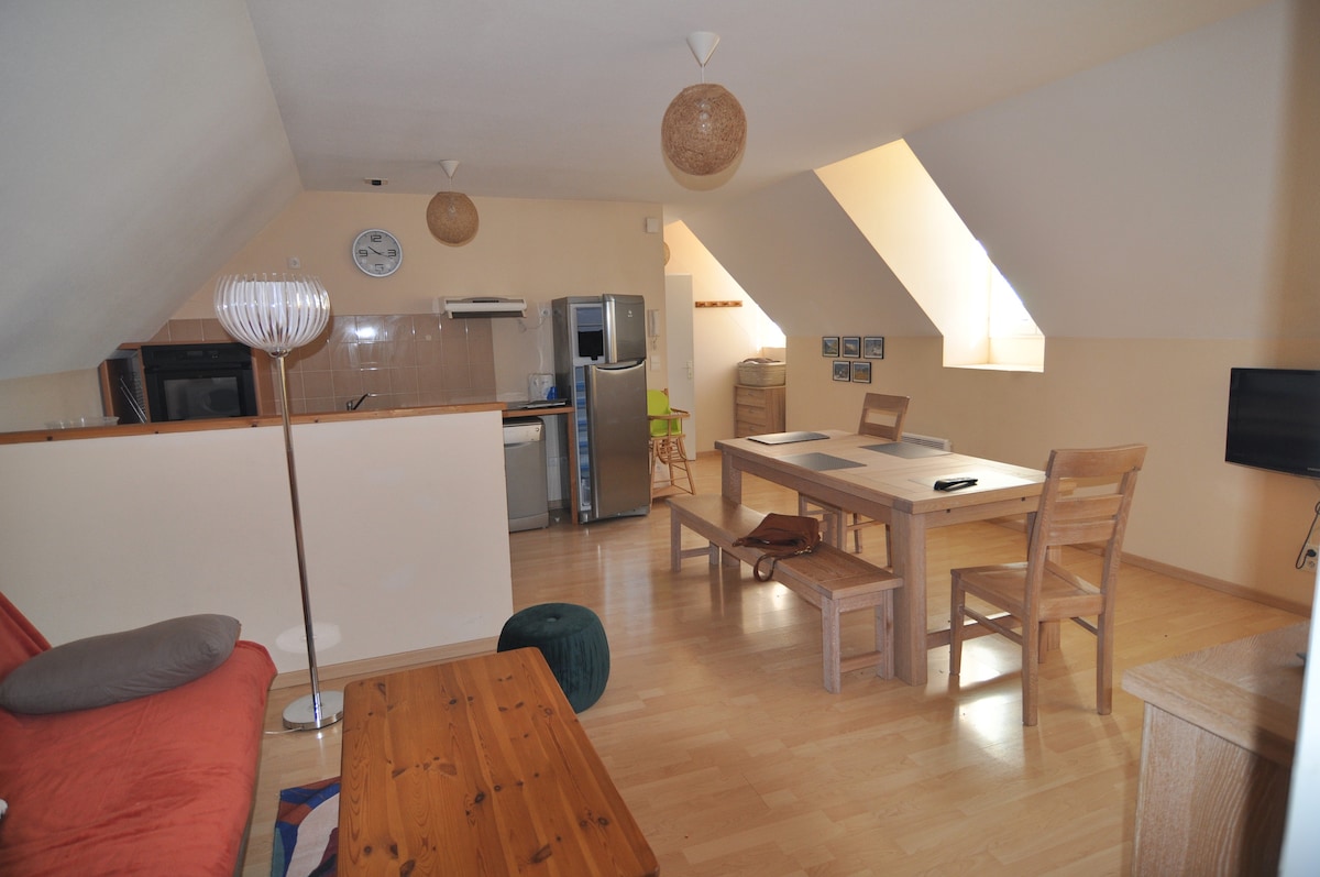 Bel appartement dans une maison sur deux niveaux situé en rez-de-chaussée , dans un quartier calme et résidentiel à 600 mètres du centre ville , venez découvrir ce T3 de 80m² comprenant un salon , une salle de bain , une chambre parentale donnant sur une terrasse privée de 20m² , une deuxième chambre avec deux lits individuels et une cuisine équipée . Le stationnement est possible et gratuit devant la maison , une entrée privée vous permettra de regagner votre logement à l'heure que vous voulez.