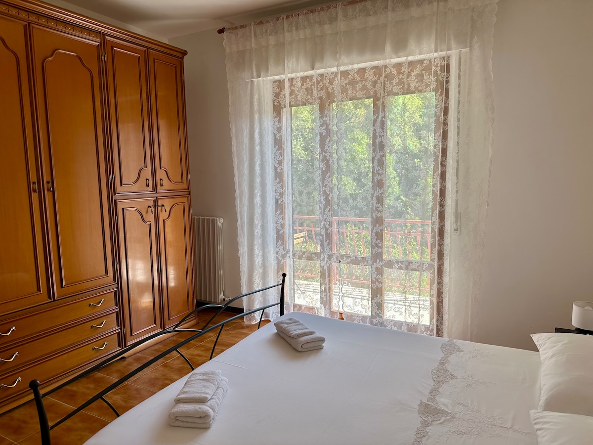 Bilocale con vista sul Santuario raggiungibile a piedi in 5 minuti.L'appartamento e' dotato di aria condizionata in entrambi i locali,internet wifi,piano di cottura a induzione, forno e microonde,lavastoviglie, TV, lavasciuga. Si trova in zonacon tutti i servizi presenti; nello stesso stabile sono presenti un supermercato e una farmacia, nel quartiere tabaccheria, bar pizzeria,pescheria, lavanderia e sportello bancario con Bancomat.Le parcheggio e' gratuito.