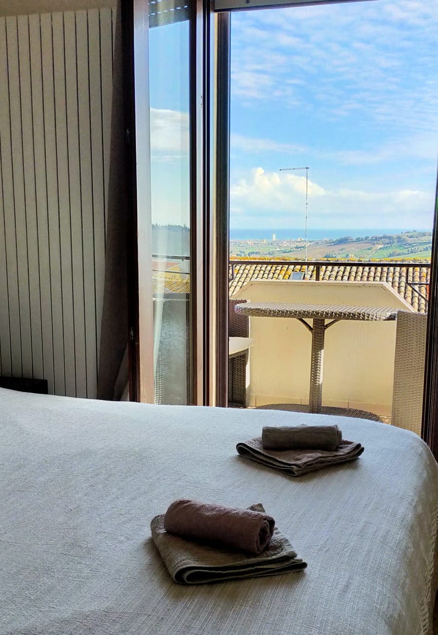 Mini Appartamento bilocale (3 posti letto). L'appartamento luminosissimo è al 6° piano con ascensore. Composto da camera matrimoniale , soggiorno abitabile con divano letto 1 posto singolo, angolo cottura , bagno con box doccia. Due balconi con splendida vista mare con panorama a 360 gradi su Baia del Conero , Porto Recanati , Loreto , Appennini. Aria condizionata, tvlcd , cassetta di sicurezza, portone blindato, lavatrice , posto auto riservato coperto , Wi-fi.