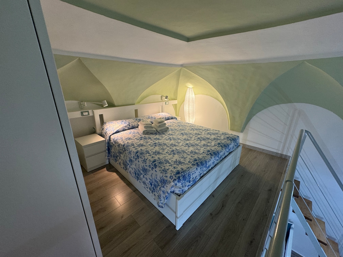 Open space indipendente su due piani, situato al 2° e 3° piano di un tradizionale palazzetto del borgo antico. Ingresso in soggiorno con divano letto, angolo cottura, balconcino e bagno di servizio. Una scala interna conduce alla camera da letto con bagno privato e accesso ai terrazzi esterni con vista mare. Grazie alla sua posizione, sarà facile raggiungere a piedi (o con trasporto pubblico) i vari punti di interesse.