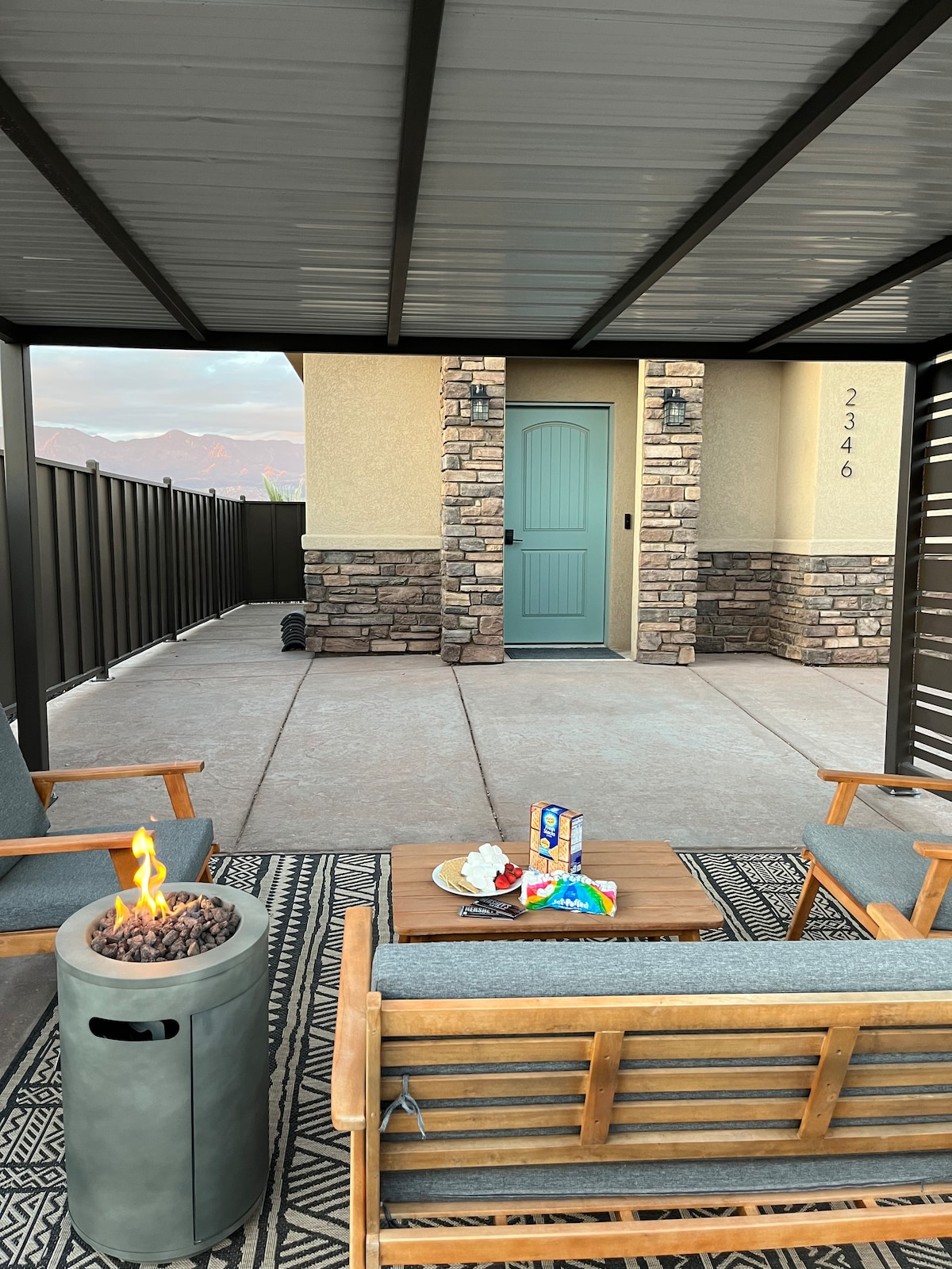 Come enjoy the GramLux at Sand Hollow and forget your worries in this spacious and serene space. Located within a couple minutes from Sand Hollow Lake, Sand Dunes & Golf Course. This 2,200 sf, 3 bed/3 bath has plenty of room for 8 guests. It boasts a master bedroom with walk-in closet, quarts counter tops, office space, soaking tub, walk-in shower and amazing mattress. A well supplied chef's kitchen, patio with wet bar, dining table, hammock, fire pit, and a gas/charcoal BBQ for outdoor cooking.