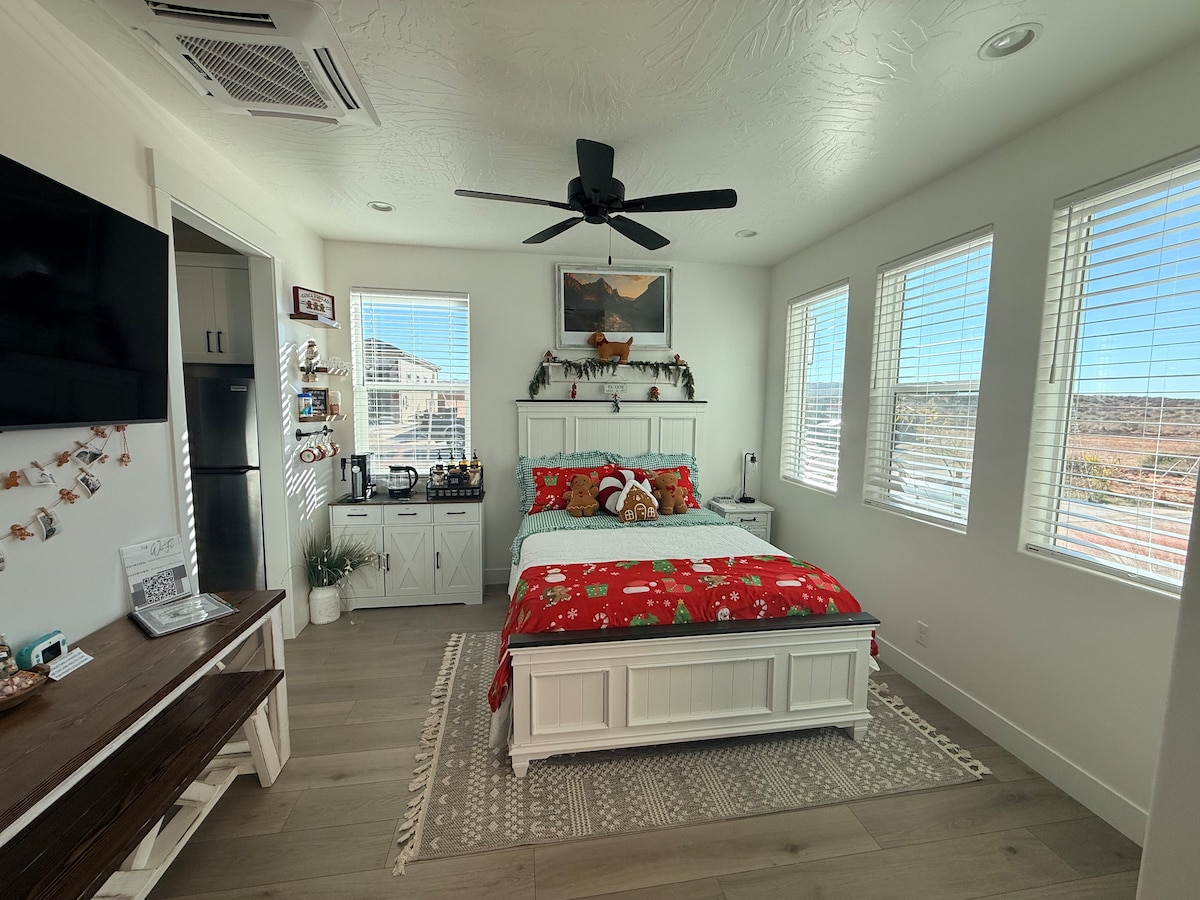 After a day of adventures, come recharge and relax in this calm, stylish space! Intention and attention to detail was poured into this home away from home. From the start of the day to the very end, this Bryce Canyon themed 1-bed, 1-bath casita has all of the amenities a couple travelers need, including stackable washer and dryer (laundry pods too), microwave, mini fridge, dishware, and TV with Netflix. Centrally located with convenient access to Sand Hollow, Quail Creek, Snow Canyon, and Zion.