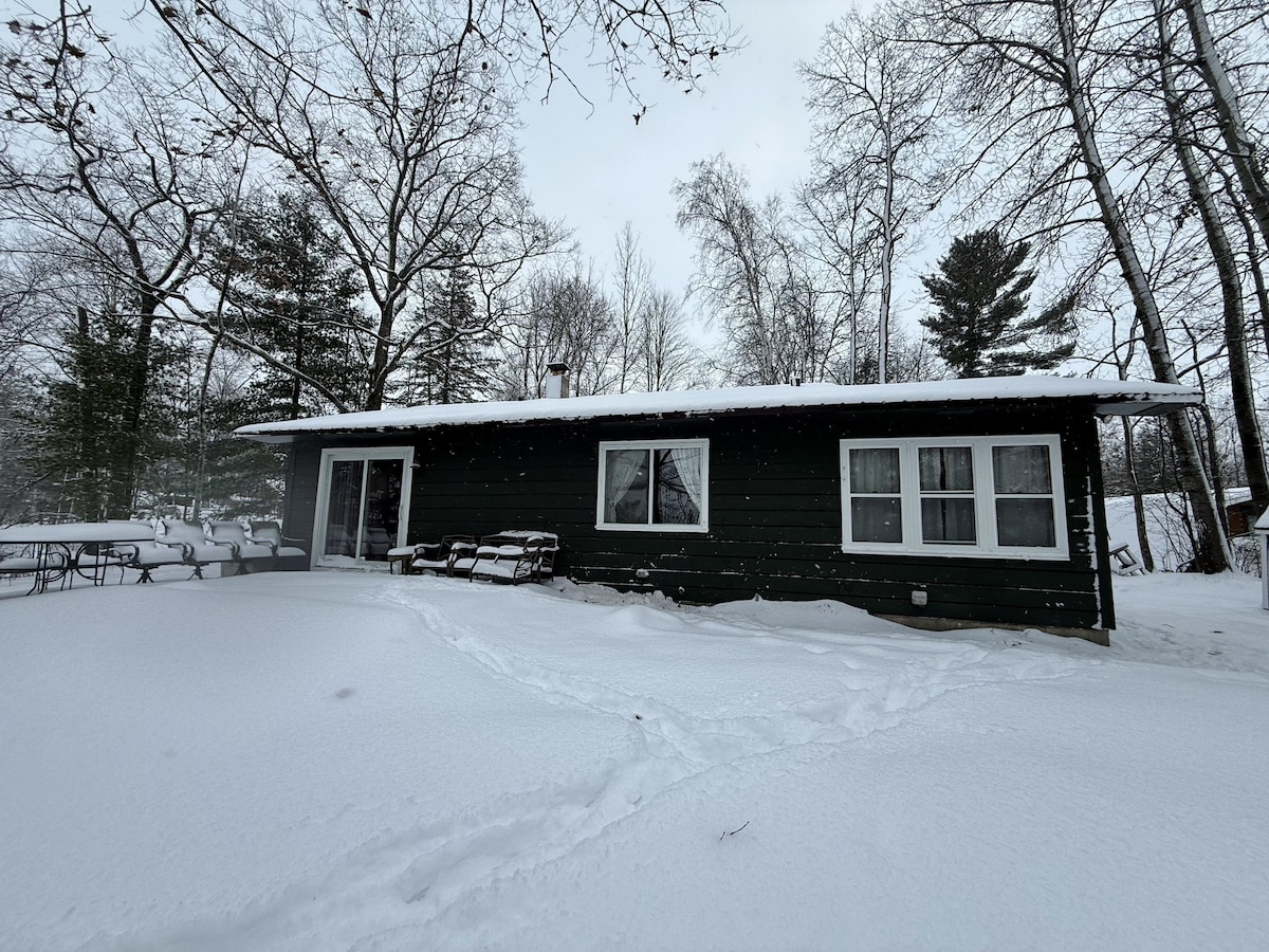 Renovated cabin nestled high in the pines overlooking the river. Kick back and relax in this calm, stylish space where the river views will take your breath away. We have a great selection of games, books and movies to snuggle up with in front of our warm fireplace. Bring your snowmobiles, ATVs and ice fishing gear as we are close to the Gandy Dancer Trails and our beautiful river flows to two lakes for great fishing - end at our bonfire pit to roast S'mores and swap stories!