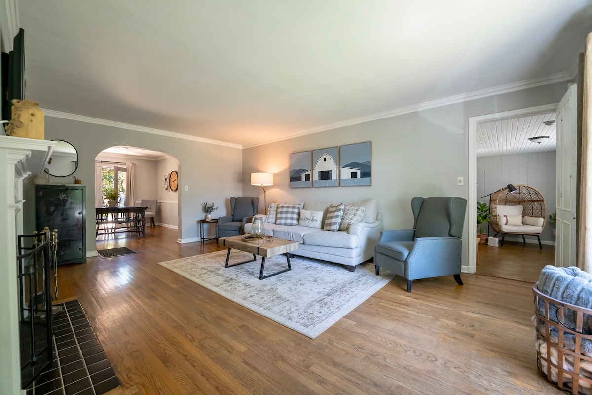 This stylish newly renovated place to stay is perfect for group trips. It is very spacious, with a game room, 3 full bathrooms, three bedrooms, and a pull out sleeper sofa in the entertainment room. You'll be close to downtown Tulsa. All your favorite event centers, boutique shopping, and fine dining is just a short drive away.