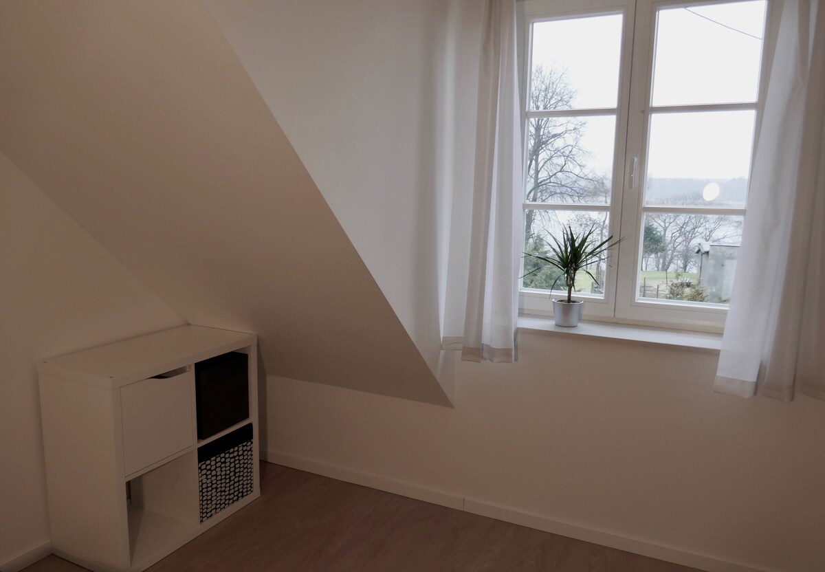 Dom letniskowy z bali drewnianych, położony nad samym jeziorem, na wsi - 20 km od Kwidzyna (woj. pomorskie). Do dyspozycji gości jest duży salon, w pełni wyposażona kuchnia, dwie sypialnie na piętrze, łazienka oraz Internet. Aby w domku była ciepła woda, należy rozpalić w piecu - drzewo będzie do Państwa dyspozycji. W sezonie letnim nie jest to konieczne, chyba że nastąpi po sobie kilka pochmurnych dni. W cenę wliczona jest również łódka i kajak.