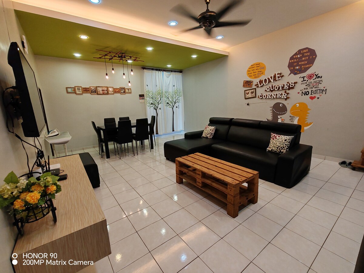 This is a spacious and clean double storey house with 4bedrooms, with 5 queen size and 2 single size beds. It could accommodate 12peoples comfortably, we have 3 en-suite bath + 1 share bathroom with water heater for guests use. It is most suitable for a big family and traveling group for truly memorable holidays. 这是一个宽敞,干净的双层房子,共有4间卧室,有6张双人床。它可以舒适地容纳12人(还有足够的空间,可以容纳更多的旅客,额外单人床可以根据要求提供,每张RM30),我们有3套房浴+ 1共用浴室配有热水器供客人使用。 它最适合一家大小和旅行团来渡过一个真正难忘的假期。