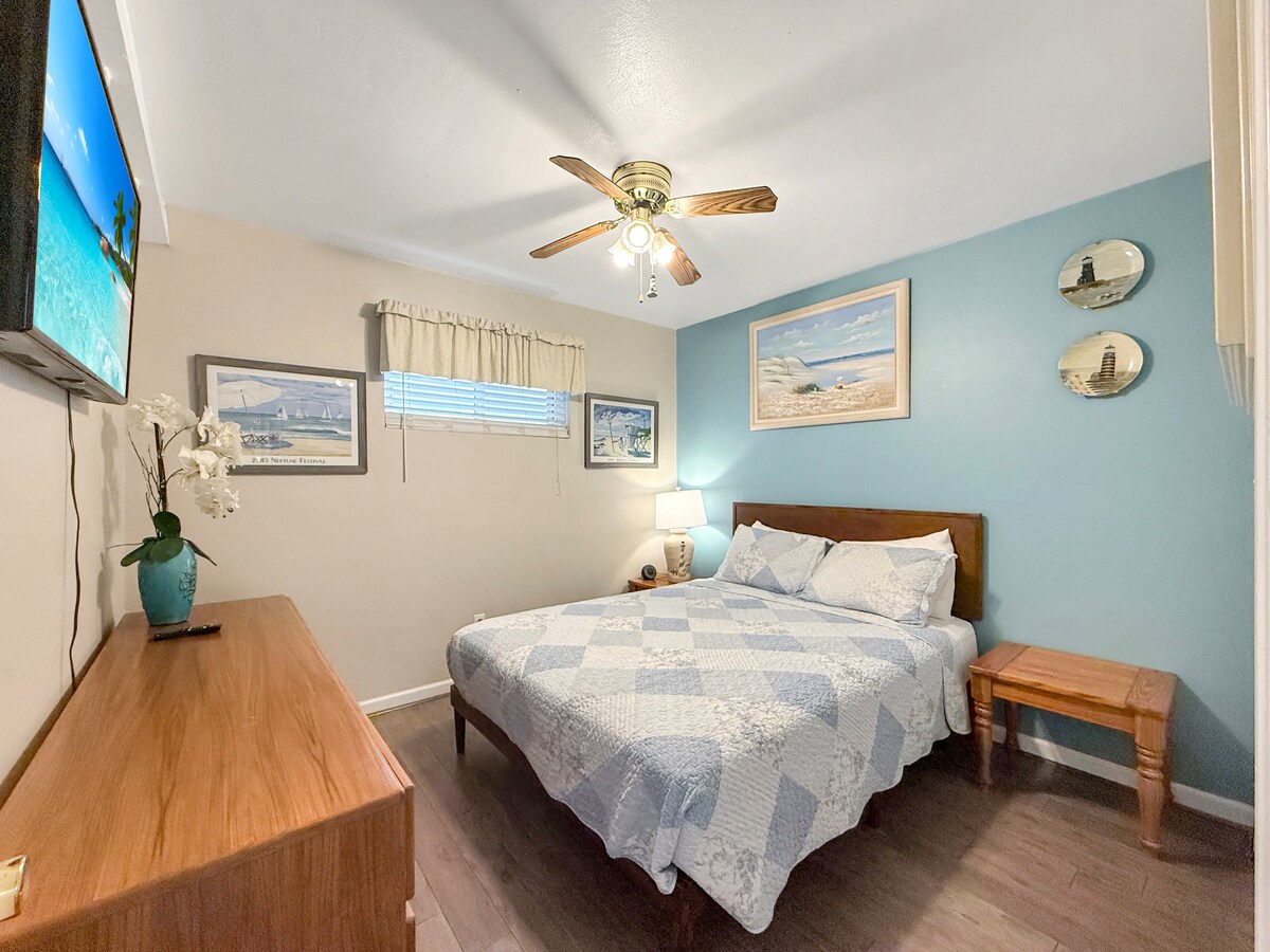 Welcome to the Cozy Crab – updated, comfort-focused & steps from the sand! Located in a quiet corner of a beachfront building on the Virginia Beach boardwalk with a seasonal pool (open mid-May–mid-Oct). Sleeps 4 with 3 real beds: one queen and two singles, all with real mattresses. Features a large, updated bathroom with full vanity and a kitchen. Just a few steps up—no elevator needed. No chore checkout, pro cleaning, fresh linens/towels, WiFi. 2nd-floor grills. Eat! restaurant is downstairs!