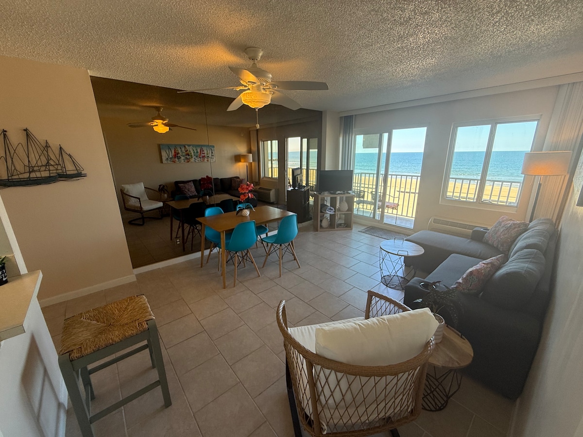 Our newly renovated condo has all of the comforts of home. Accommodates 6 adults or perfect for families. Bedroom #1 has a KING SUITE, with sliding glass door that leads to the pool. The pool is open from Memorial weekend til the end of September. Bedroom 2 has a Queen size bed and livingroom has a sofabed. Blackout curtains in both bedrooms. Cable TV and Wi-Fi in ALL rooms. Secured building. Outdoor shower and shared grill. Come have a relaxing and fun vacation at the beach.