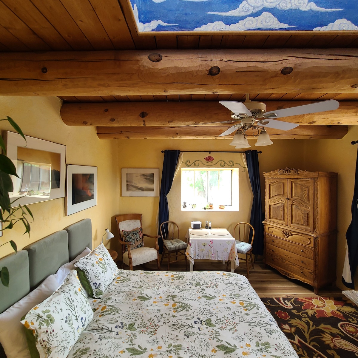 Let our centrally located light-filled Casita welcome you to the desert oasis that is Albuquerque. Aptly named Casita de Tierra (Earth in Spanish) for our dedication to creating an eco-conscience space inspired by New Mexico’s extraordinary landscape. From the handmade Alligator Juniper headboard to the bamboo bed linen, at Casita de Tierra we are committed to providing an unparalleled Sustainable, Local, Organic, and Whole (SLOW) experience each and every time you visit. All are welcome!
