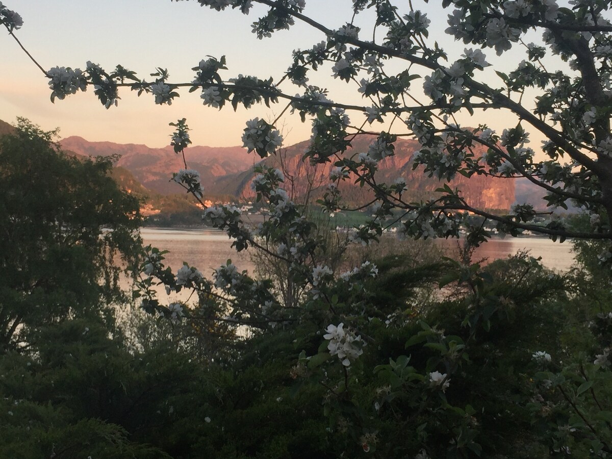 This beautiful, spacious and well-equipped apartment with free parking is a perfect base when you are going on a trip to Prekestolen, Stavanger, working at Forus or experiencing the region with its fjords, mountains and sea. The apartment contains everything you can imagine for a pleasant and relaxed stay. You have a view of the fjord, mountains and historic garden with the opportunity to rent my boat. As a host, I am almost always nearby and do my best to arrange a memorable stay. Welcome.