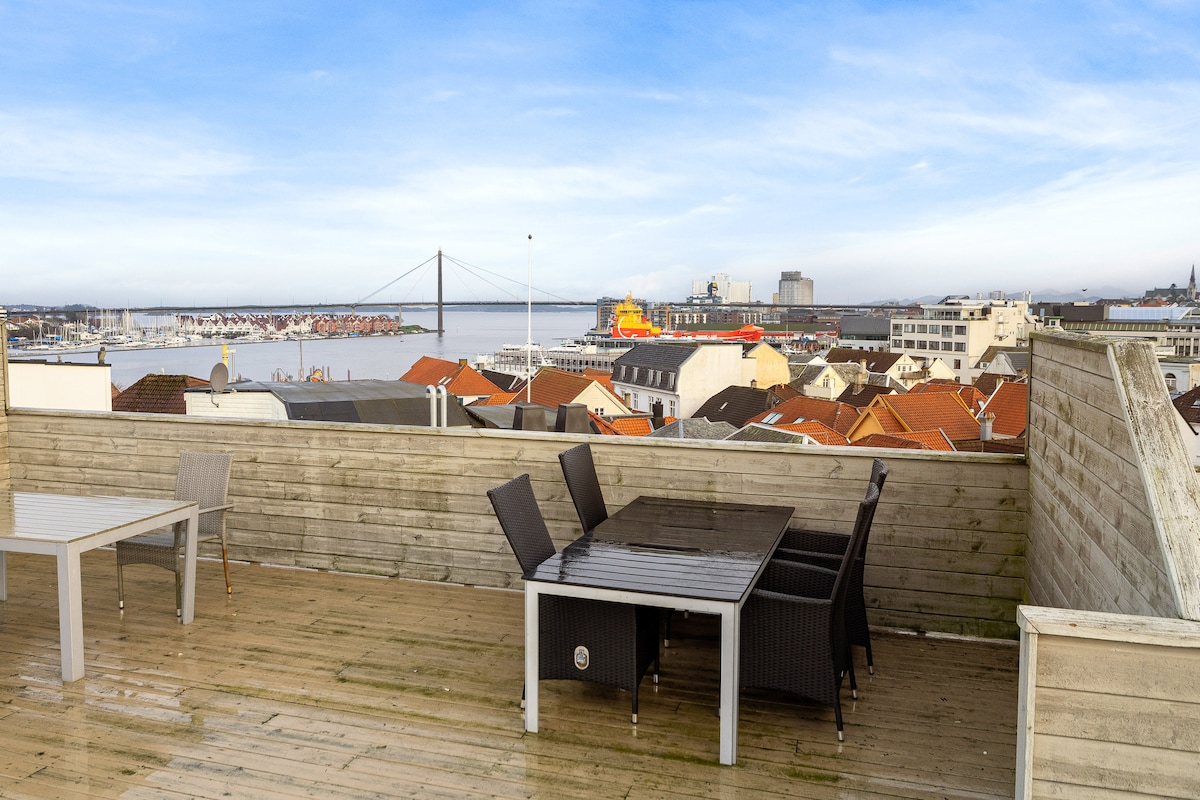 Velkommen til å bo i min leilighet når jeg ikke er der selv! Leiligheten ligger i Sandnes sentrum med stor terrasse. Her bor du sentralt, og kan gå til tog/buss, kjøpesenter, restauranter og park. Det er sjelden støy utenfra, men det kan forekomme at man hører vanlig byliv i noen helger. En liten kjøretur unna steder som Prekestolen og Kongeparken.