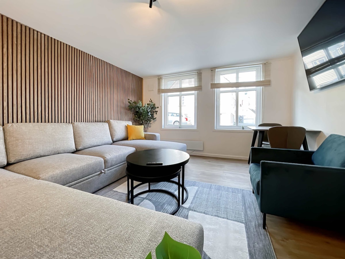 This spacious 2-bedroom apartment is situated in a prime location, just a stone's throw away from the iconic Red Church and the famous Pedersgata, known for its vibrant dining scene. Ideal for families or groups, our apartment comfortably accommodates up to 6 pers in two cozy bedrooms and a living roomn. Double bed in each bedroom and Sleeping Sofa in living room and a full equipped kitchen .