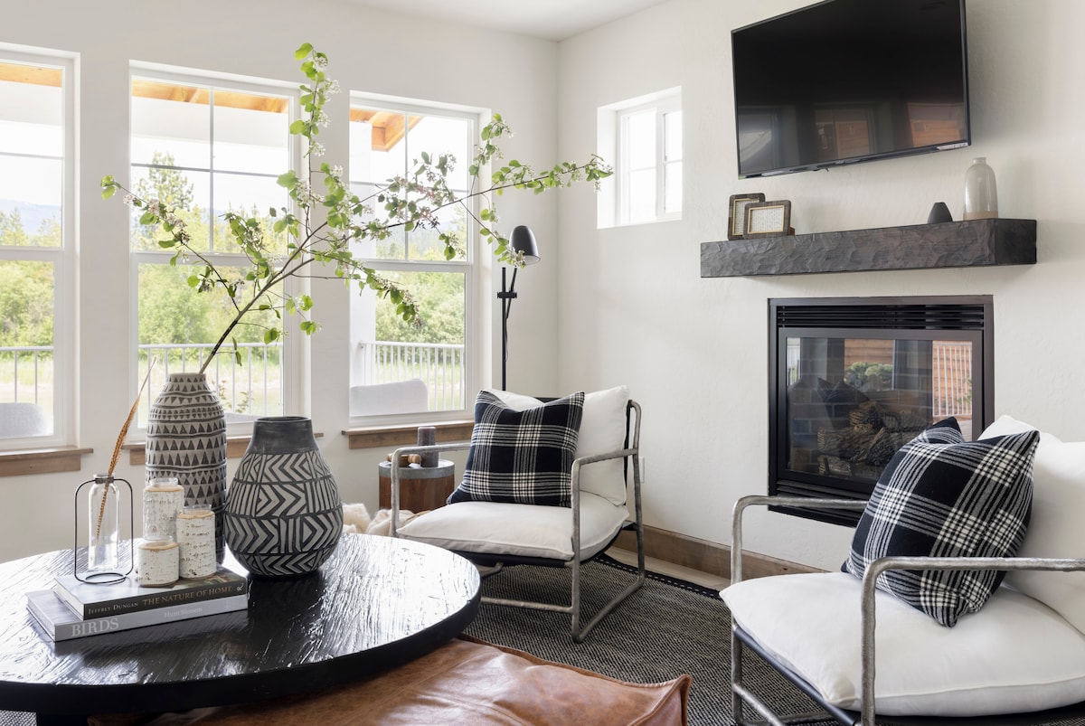 • Newly Built • 5 minutes to downtown Sandpoint, Lake Pend O'Reille, the base of Schweitzer Mountain Ski Resort, or Bonner General Hospital • Free SPOT bus stop one block away • Fully stocked kitchen • Full size washer/dryer + detergent provided • Electric fireplace • Bright, clean, cozy • Hand milled trim, countertops, and finishes • Large deck w/ lounge chairs and grill • TV w/ Roku + fast WiFi • FRAGRANCE FREE, 100% cotton linens, cleaned w/ natural products, low-tox