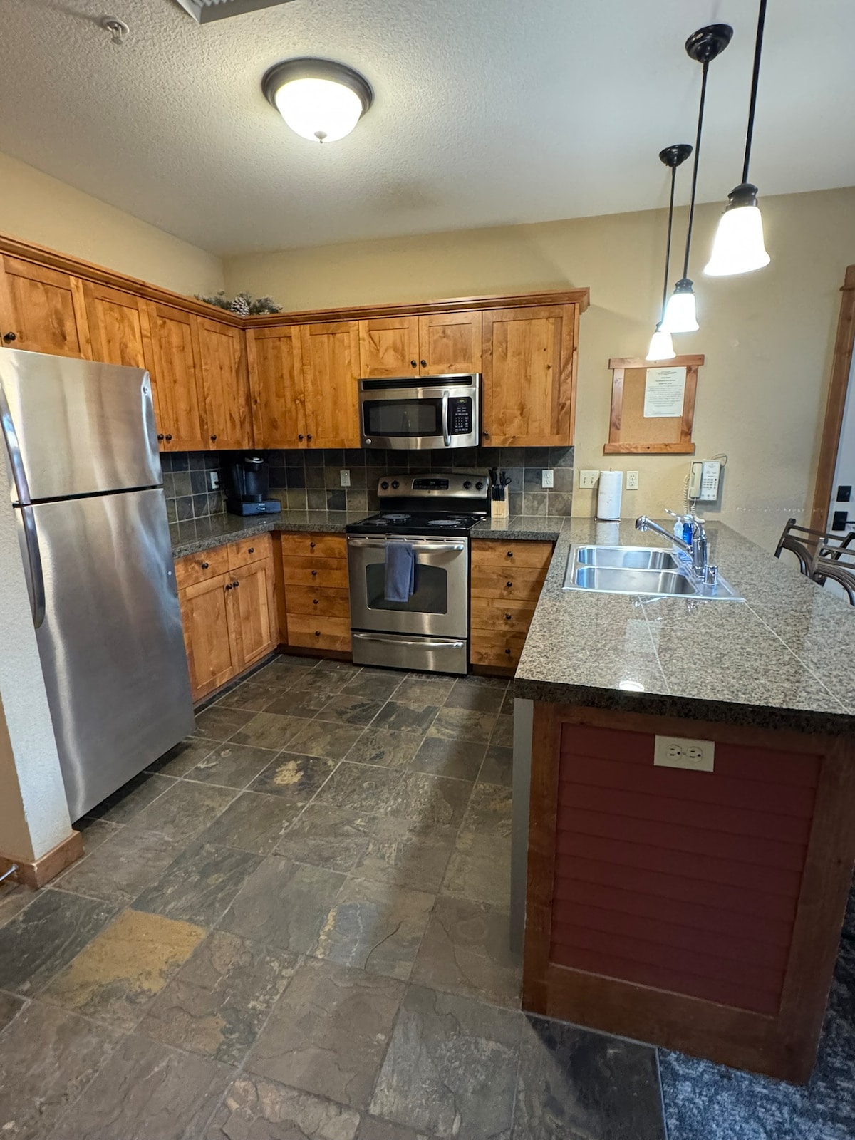 Your family will be close to everything when you walk out the back door onto the patio of this condo conveniently located just steps away from the gondola, waterpark and Hottubs. Making it easy to make rope drop for those fresh tracks be them dirt or snow. After all the fun toss your gear in the lockers then find your way to the rooftop hot tub or maybe sit by one of the fire pits before jumping into the plush king size and watching your favorite show or the first five minutes anyway