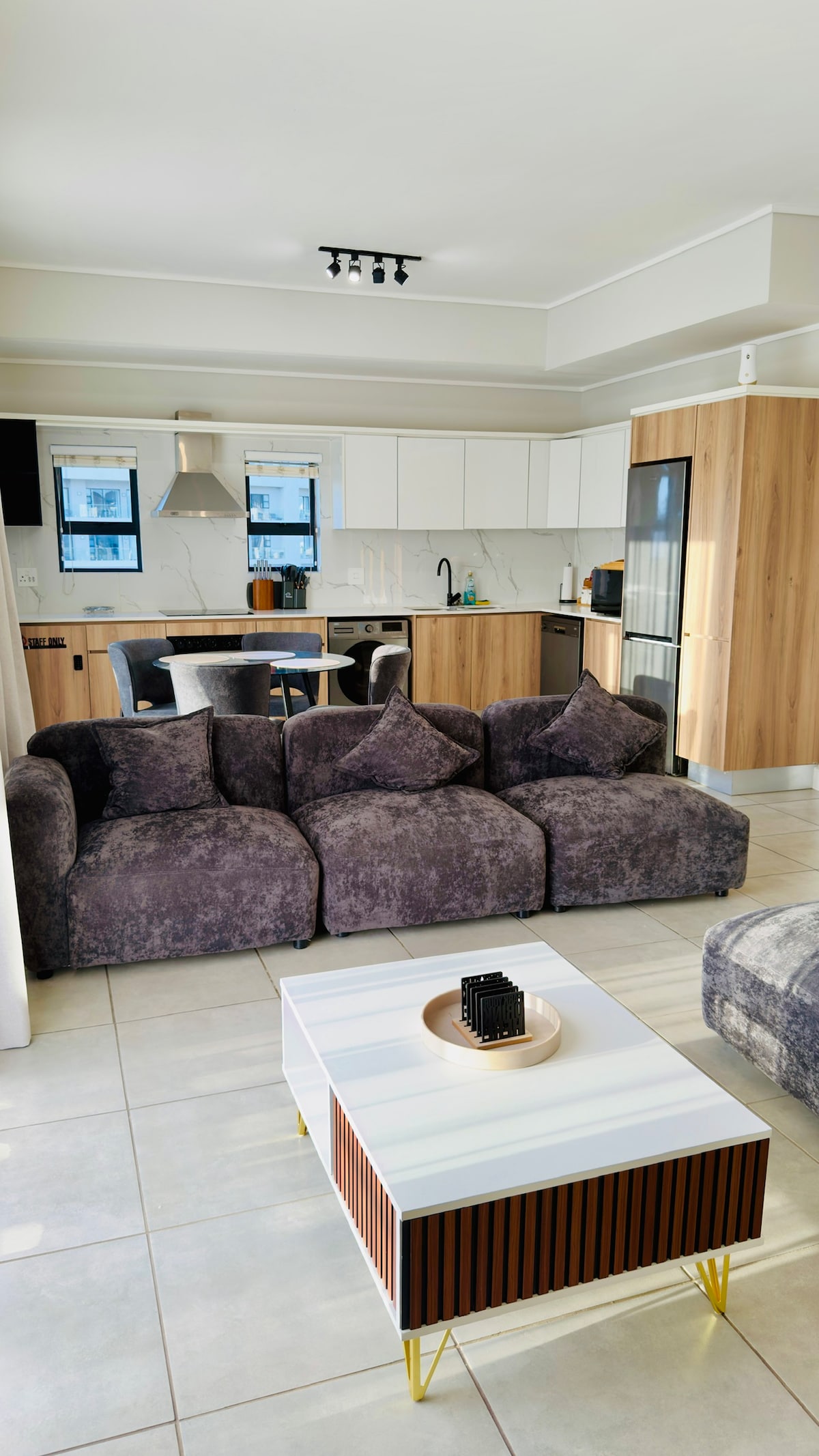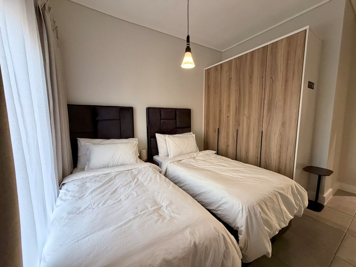 Modern 2-bedroom apartment in the heart of Munyaka Lifestyle Estate. Includes 2 private rooms, fully equipped kitchen, dining area, lounge & balcony. Enjoy access to the crystal-clear lagoon, Laguna restaurant, gym, spa, bar, and 24/7 security. Perfect for families or friends looking for comfort, style, and resort-style living near Mall of Africa.