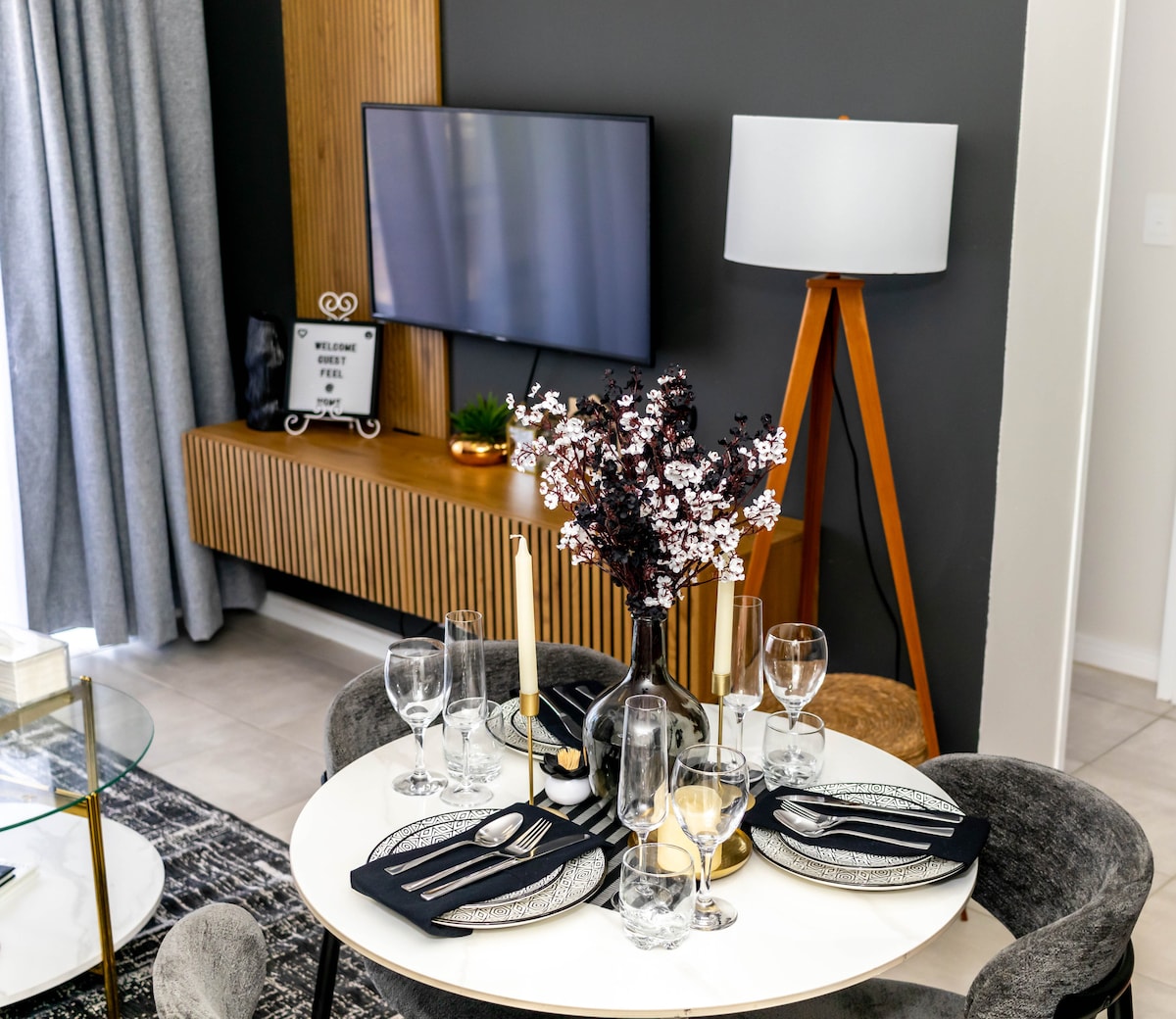 Discover a true home away from home, equipped with all the essential amenities for your comfort. Conveniently located near the Mall of Africa for your shopping needs, and right across from Waterfall City Hospital. Experience the beauty, comfort, and coziness of our space, offering 180° views of the stunning Waterfall landscape. At night, the city comes to life, offering a spectacular view from our spacious balcony. Come and enjoy this beautiful space for a one of a kind stay.