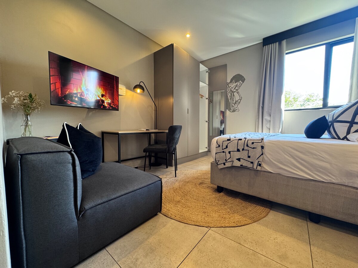 Experience modern aesthetic & premium comfort in this impeccably designed studio. 5 minutes from Rosebank Mall & Gautrain Station - 10 minutes from Sandton City, either way commute is effortless. Enjoy high-speed connectivity, a serene environment for deep focus or unwinding after a long day. OR Step out into one of Jo’burg’s most sought-after neighbourhoods. Whether you’re exploring the local art galleries, world-class dining, or boutique shopping, this studio serves as your perfect sanctuary.