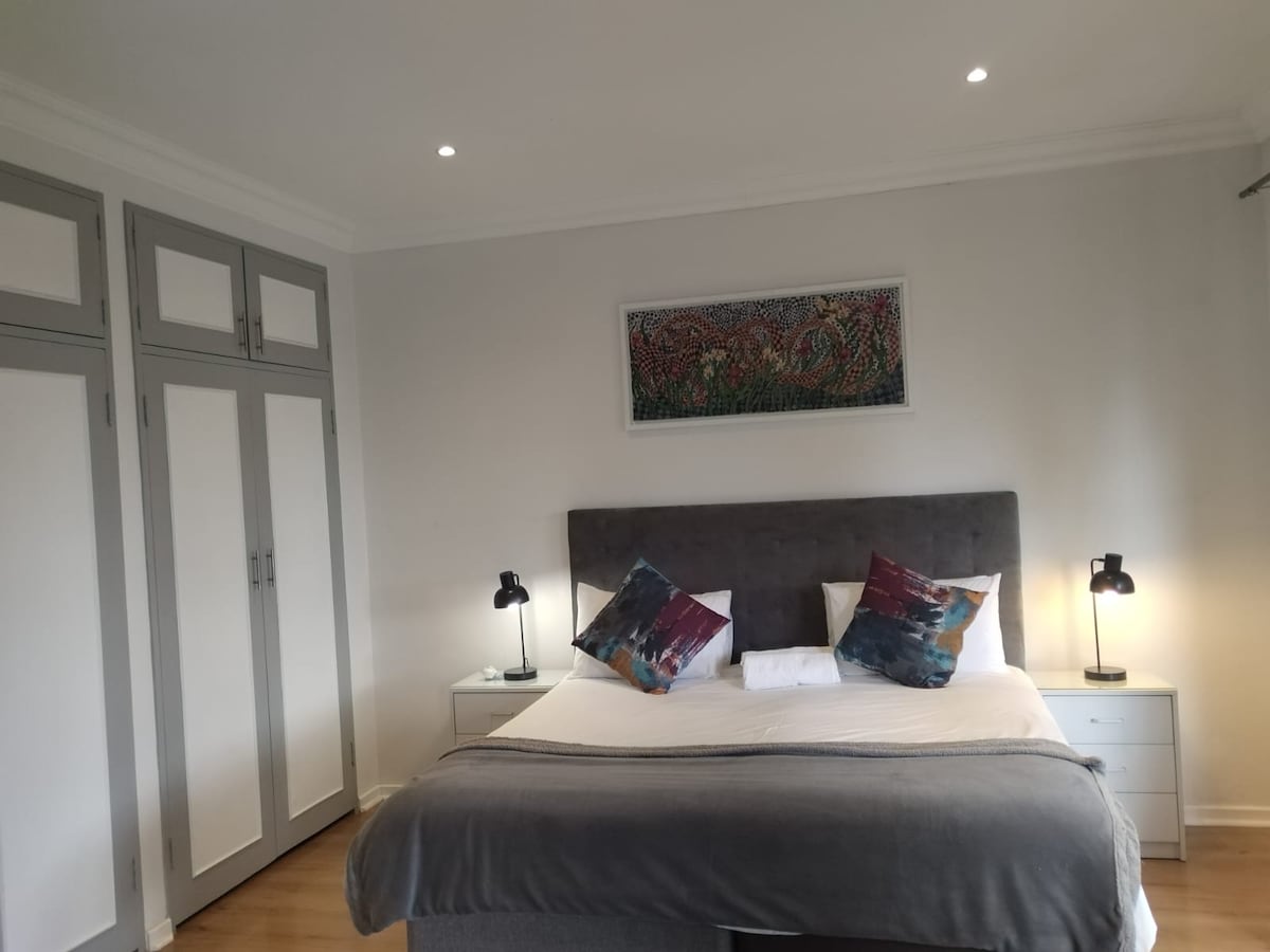 This is a haven of calm where style meets comfort. This is for guests that value elegance in a peaceful, secure serene environment. This suits solo travelers, couples or remote workers. The flatlet has been thoughtfully furnished for warmth and comfort. There is a spacious bedroom with clean linen and a ensuite with fresh towels and toiletries. There is also a separate open plan full kitchen with a dining space and a cozy lounge ideal for unwinding. A dedicated working space is also included.