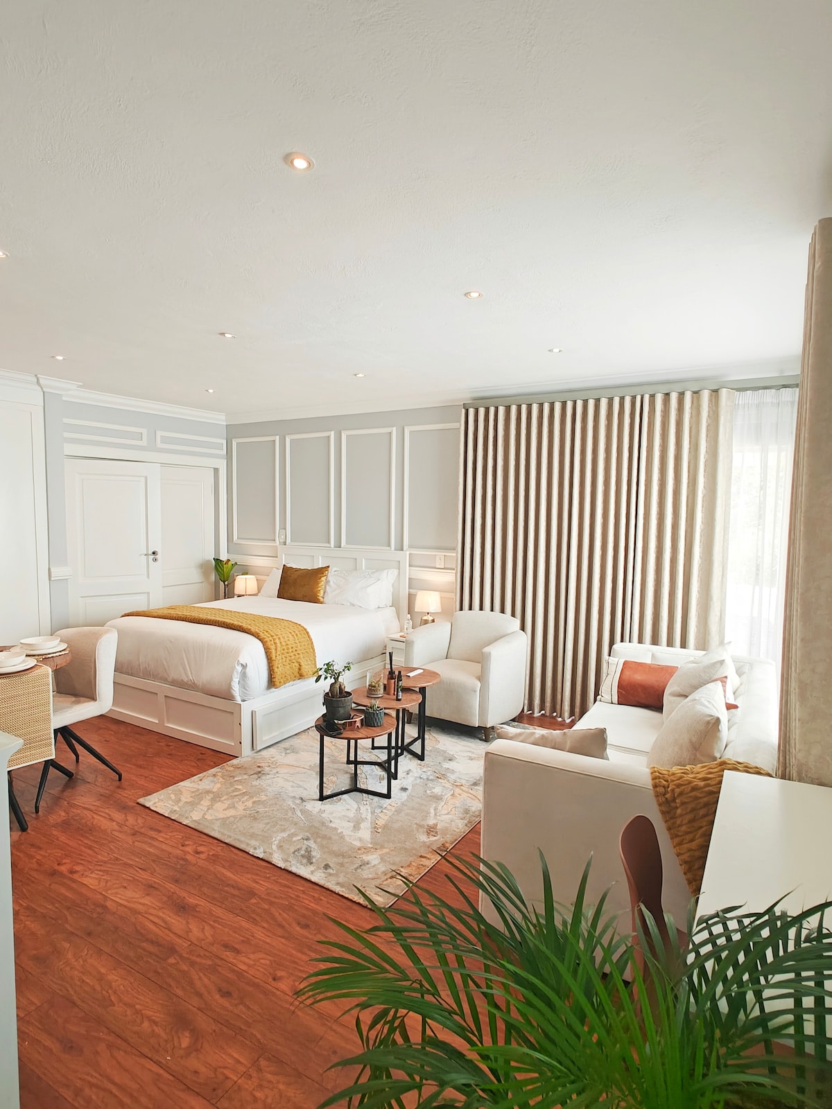 Our home is a canvas of tasteful decoration, adorned with unique furniture pieces that infuse the space with character and charm. The enchanting outdoor space is a haven for al fresco dining and relaxation by the sparkling pool. Only a 1-minute stroll away, you'll find yourself on the vibrant 4th Avenue – Parkhurst's beating heart. Indulge in the best fine dining and explore art galleries. Power supply is uninterrupted. Child-friendly, and with a dedicated workspace for business travelers.