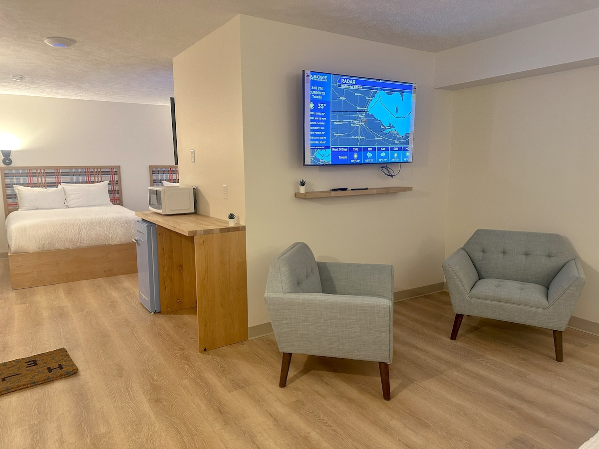 Experience the charm of The 419, a boutique hotel where you are within walking distance to top-rated restaurants, lively bars, shopping, and ferry rides to the islands! Our rooms are designed with your comfort in mind featuring plush bedding, modern decor, and an inviting environment. - Room 209 has a king bed and a pull out queen size sofa bed - Boat & Trailer Parking - Free off street parking - High speed internet/Wi-Fi - Fully stocked kitchen - Keurig coffee station