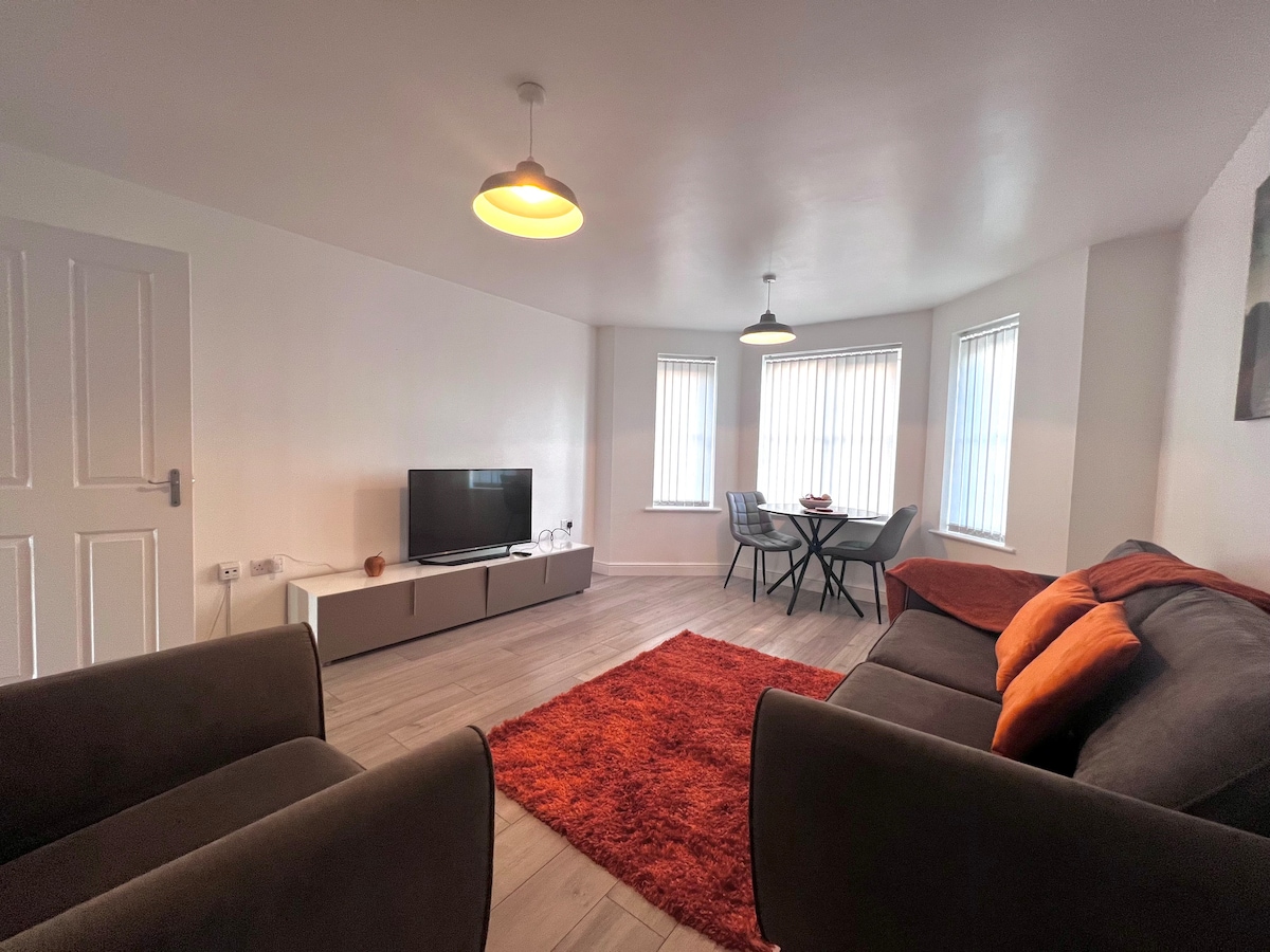 Modern One-Bedroom Apartment in Walsall This stylish and comfortable one-bedroom apartment is just a 5-minute walk from Walsall town centre, offering convenience and modern living in one. The space features contemporary decor, a private fully equipped kitchen, and a cozy living area with a Smart TV and fast fibre WIFI, perfect for relaxing after a busy day. Guests will also enjoy -free parking -easy access -smart tv -Wifi -New and modern look -private kitchen
