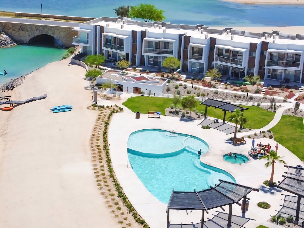 Feel right at home in our spacious, newly completed end unit condo with a 5-6 minute walk to the beach! The complex is serene and quiet, allowing for your much needed comfort and relaxation. You can relax in the condo, enjoy either of the two pools or rooftop patio with the best view of the Sea of Cortez in all of Las Conchas. Since our unit is in the first, most forward facing building, the view from the huge patio is one of the best views in the entire complex and it's very private.