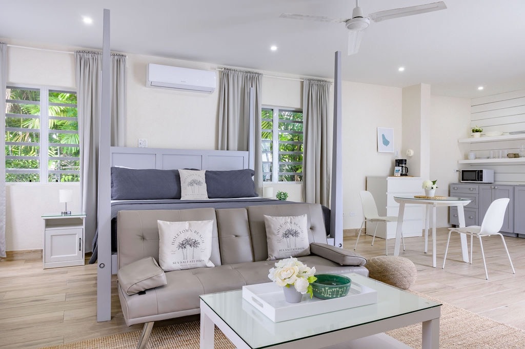 Life's A Beach is on the northern end of Paynes Bay on a beautiful talcum powder beach near to other small luxury condos. The apartment is in the centre of the building making it quieter and being on the third tier of the building it has fantastic views over the bay. Access to the beach is approx 30 second walk down the stairs and through the manicured garden. The sun loungers are set out each morning.