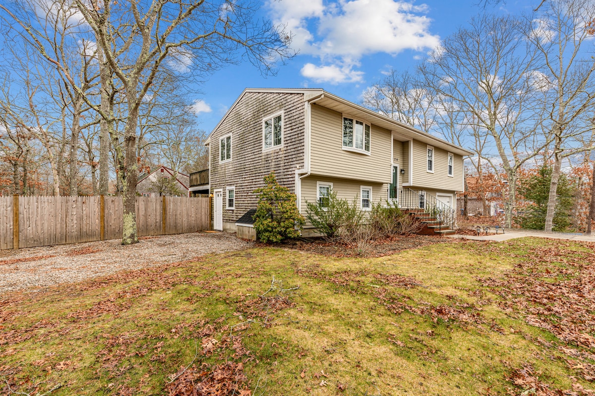 Come enjoy the cape from a private, dead-end road off Rt 28. 10-15 mins to beaches, 15 to Hyannis or Falmouth, 5 to Mashpee commons. Or, relax in a hammock in the privacy of the fully-fenced in wooded yard or by the fire pit. Family and dog friendly! 2 desks for WFH in separate rooms. -Heat/AC in every room -High speed Wifi : 200+ Mbps in all areas inside, 30+ Mbps from hammock -Smart speakers for in/outdoor use -Fire TV w/ Netflix, Disney+, etc -Working fireplace (in Winter)