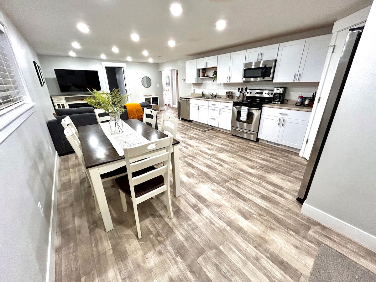 A Private entrance will invite you into your own two-bedroom basement suite. NO CLEANING FEES ***You must agree to our ALLERGY NOTICE to book*** Fall into a deep sleep with queen-size beds and newer furnishings throughout. The cozy living room is great to spread out and relax. Full kitchen and dining area. Enjoy Unlimited Hot water. Endless movies and shows are at your fingertips along with Super High-Speed Wifi. There is plenty of room to relax after a long day of traveling and playing.