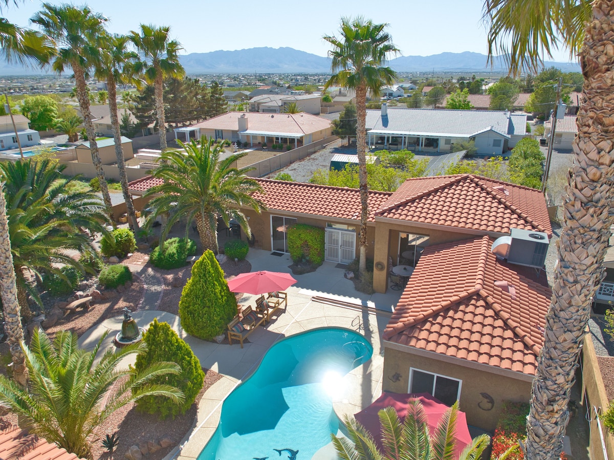 Located in the Mojave Desert and just steps from the Charleston Peak Winery, our beautiful Cabernet Cabana pool house is the perfect escape for you & your guests. The 1400 square ft pool house comfortably sleeps 6 with a private pool & hot tub and plenty of indoor/outdoor space. The pool house is located on 1 1/2 acres in an upscale neighborhood . We live in the main house. Our property is very quiet, secluded, and walled. Plenty to do, including pool table, darts, horseshoes, games, etc.