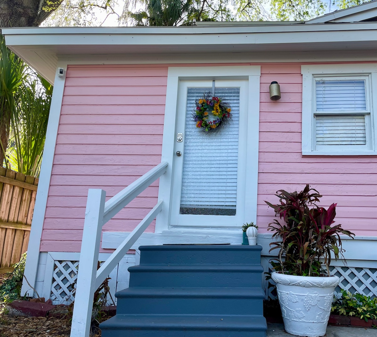 Located in Sanford FL, our Hidden Little Cottage is a Private Studio Guest House with its own entrance, fence, features full kitchen & bath room, queen size bed, full size pull out couch & twin size travel bed, & provides flexible self check-in. We are located 7 minutes from the Sanford Airport and Boombah Sports Complex, 10 minutes to Downtown Sanford, I –4 & 4–17. We’re also central to many Central Florida attractions such as Natural Springs, Sandy Beaches, Theme Parks and Historic Districts