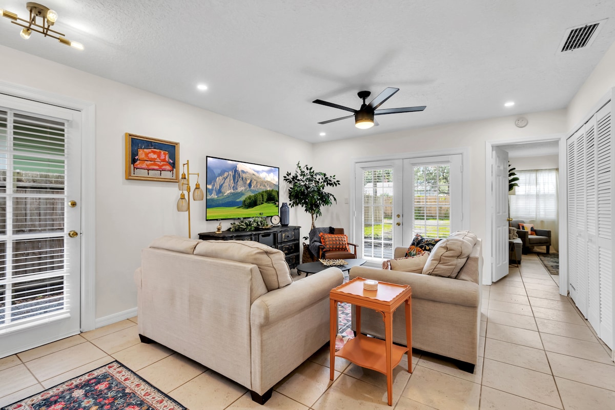 Welcome to your quiet, spacious, and private sanctuary. Enjoy all new appliances in the full size kitchen, a 50” flat screen TV, and a shaded outdoor area surrounded by greenery. It is located only minutes from the Orlando Sanford International Airport, Historic Downtown Sanford’s restaurants and shops, Lake Monroe’s scenic waterfront, and is centrally located between Florida’s beaches and the amusement parks. **Space is cleaned with EPA approved cleaners, including high touch surfaces**