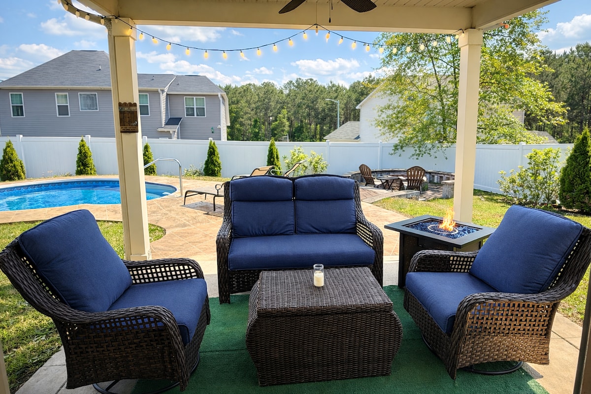 The Bull's Retreat is a renovated space with 2 King Beds and 2 single beds, ideal for travelers or getaways. It's centrally located in a peaceful neighborhood near Ft. Bragg, Fayetteville & Sanford. It's great for reconnecting with family and friends. The open-concept living space includes a fully equipped kitchen, breakfast bar, dining area, and 3 bedrooms, 2 bathrooms. You can relax around the fire pit Note: Owners reserve the garage for personal use only; it isn't accessible to guests.