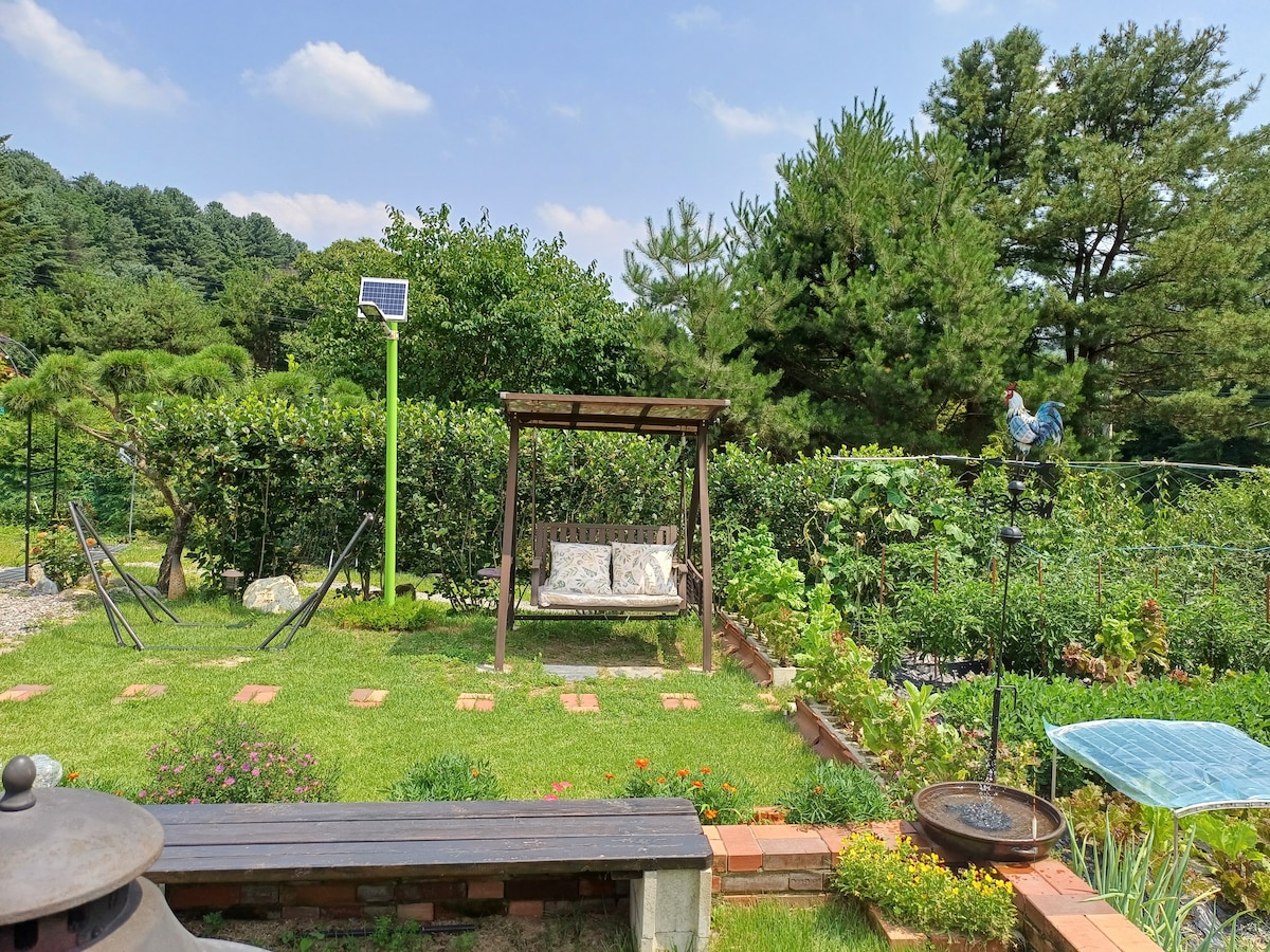 【疗愈的桃源】复式楼层/独立烧烤场& 花园&篝火/可携带狗/春川IC 5分钟