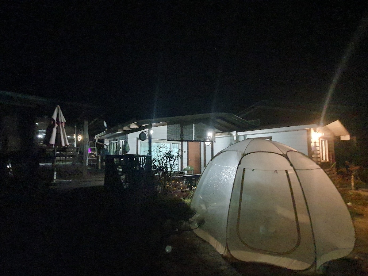 森林边的独栋别墅,像村庄别墅一样,可以在透明帐篷里观星,安静地休息!