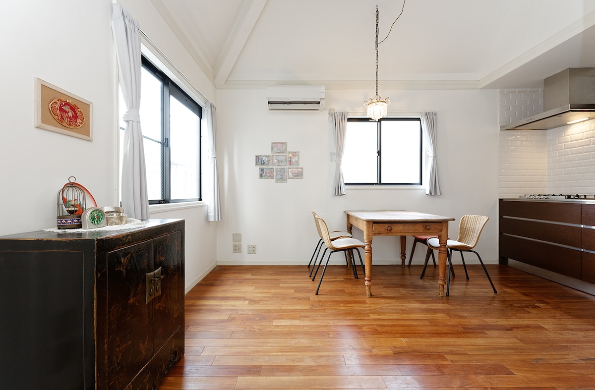 Experience a unique blend of Scandinavian and Japanese design in this renovated 86-year-old, two-story home in Sangenjaya. With 80㎡ (900 ft²) of bright space, a 3-meter ceiling, and a dramatic 7-meter ceiling above the kitchen, it’s perfect for families and small groups. Just 6 minutes to the station and 4 minutes to Shibuya, the house offers the perfect mix of calm and city convenience in one of Tokyo’s most beloved neighborhoods, Sangenjaya.