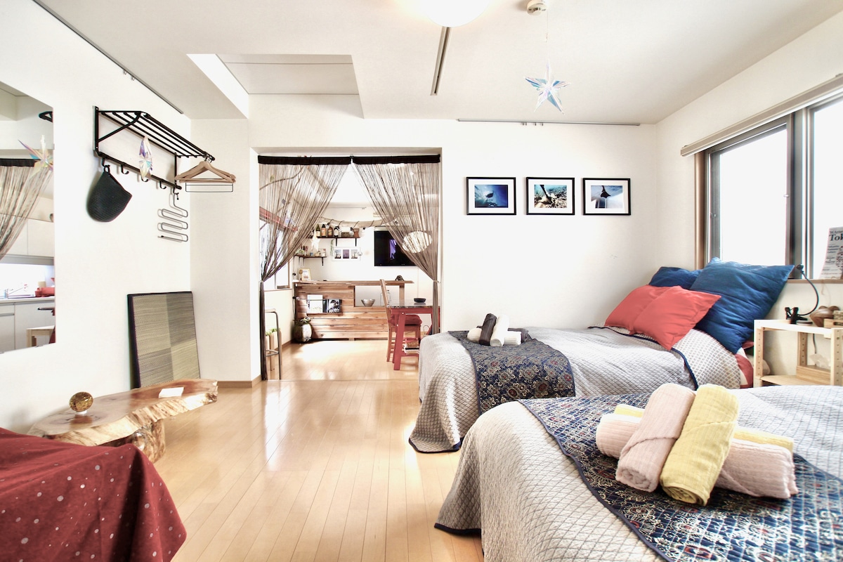 面积87平方米之大的现代日式风格公寓酒店,可容纳9位旅客,位置处于离涩谷站坐四分钟电车就可到达