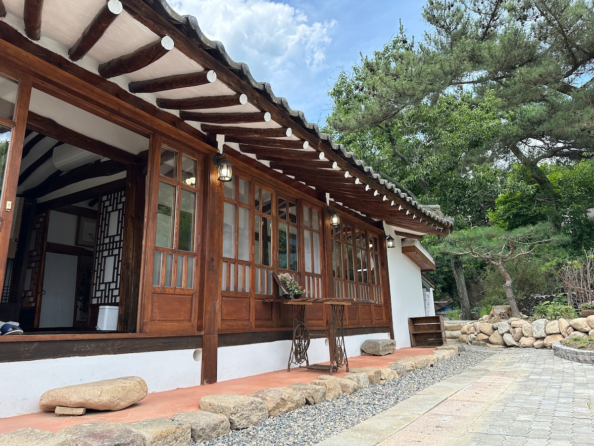 숙소 괴산_한옥애 愛 130년 전 서울에 지어진 서촌 한옥입니다. 서울 사대문 안의 한옥을 옮겨, 미술 전공한 주인장의 감각으로 재 해석하여 수 년간 쌓고 깍고 다듬으며, 공들여 지어진 공간 입니다. 마당옆에는 소나무 숲이 이어져 있으며, 드넓은 전망은 산과 물이 그림처럼 펼치지고 밤에는 별과 달을 가까이 느낄수 있습니다. 대자연과 더불어 숨쉴 수 있는 힐링의 공간입니다. 주변에는 문경새재, 산막이옛길, 괴산강이 흐르고 있습니다. 자동차로 10분거리에 괴산시내가 있으며, 5분거리 자연드림 유기농파크가 조성 되어 있습니다. 근거리에는 갈론계곡, 화양구곡, 쌍곡계곡등 속리산 자락에 위치해 있습니다.