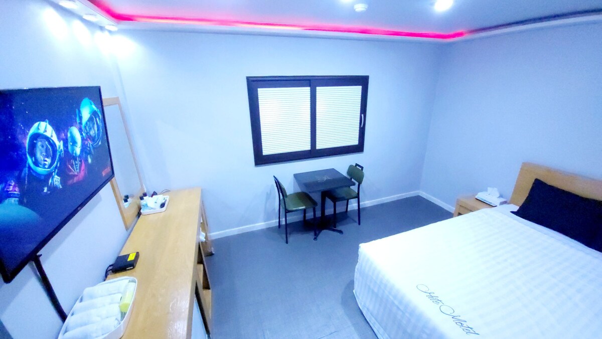 *성심당 본점 도보 5분, *중앙로역 도보 2분, *대전역 도보 10분, *한화야구장 차로 9분 1인이 편리하고 쾌적하게 쉴 수 있는 싱글 침대 준비되어 있으며, 옷장, 테이블, 의자, 냉장고, 거울이 갖추어져 있습니다. 올리모델링을 마친 화장실에는 샴푸, 트리트먼트, 바디워시, 치약, 화장지를 제공합니다. 공용 주방에는 세탁기, 건조기, 정수기, 인덕션 및 조리기구가 있어서 장기 숙박에도 매우 편리합니다. 주차 가능합니다.