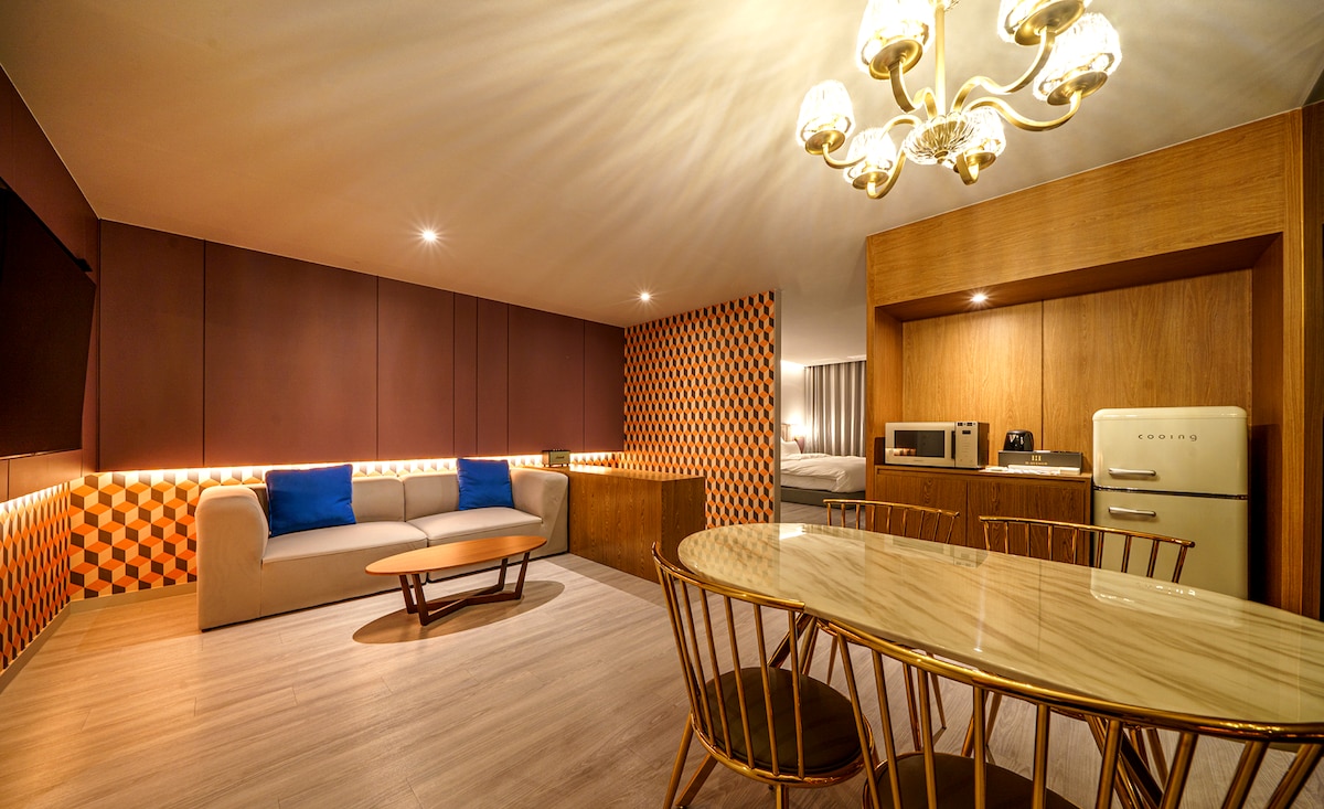 狮子公园步行10分钟/大邱美术馆&大邱甘松美术馆车程5分钟/免费(早餐、游泳池)高级家庭双人房
