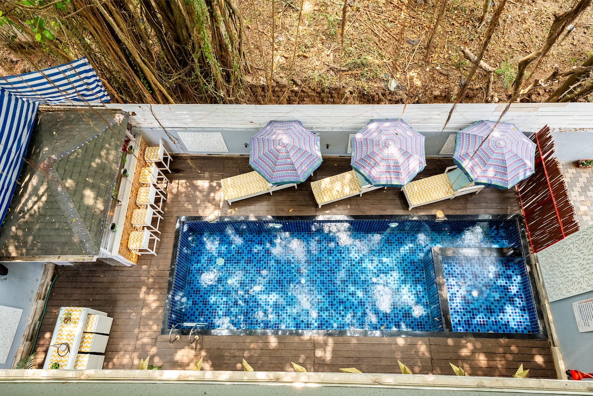 These are 2 units of our luxury semi studios with pool in our boutique hotel that combines style with simplicity to give you that ‘at home’ feeling you crave. Each featuring a large comfy bed you’d love to sink into, delicious food and visual delights everywhere, These rooms promise to capture not only your eyes but your heart. Located in the heart of North Goa 5 mins from Mall De Goa all other hot spots including beaches, party spots, historic places etc are at a distance of approx 5-15 kms.