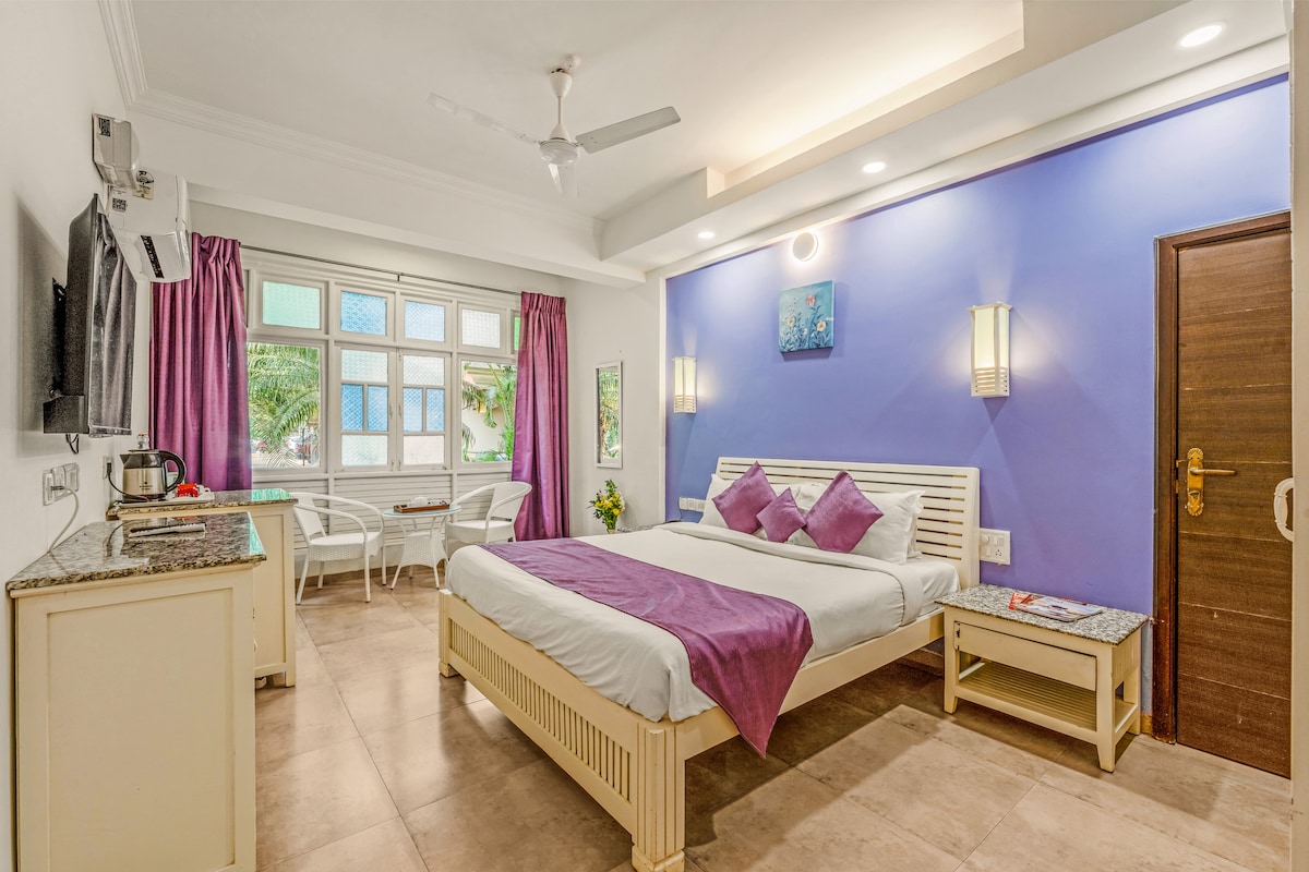 Luxury Ultra-Spacious Room with Pool in Central Calangute Experience Goa in style! This warm, spacious, and classy fully-furnished luxury room is located in the very heart of Calangute, featuring a refreshing swimming pool. Enjoy a large bedroom with a private attached bathroom and ample space to relax. The famous Calangute Beach is just a short walk away, offering fantastic views! Calangute Beach: 1.4 KM Baga Beach: 3.3 KM Anjuna Beach: 7.7 KM